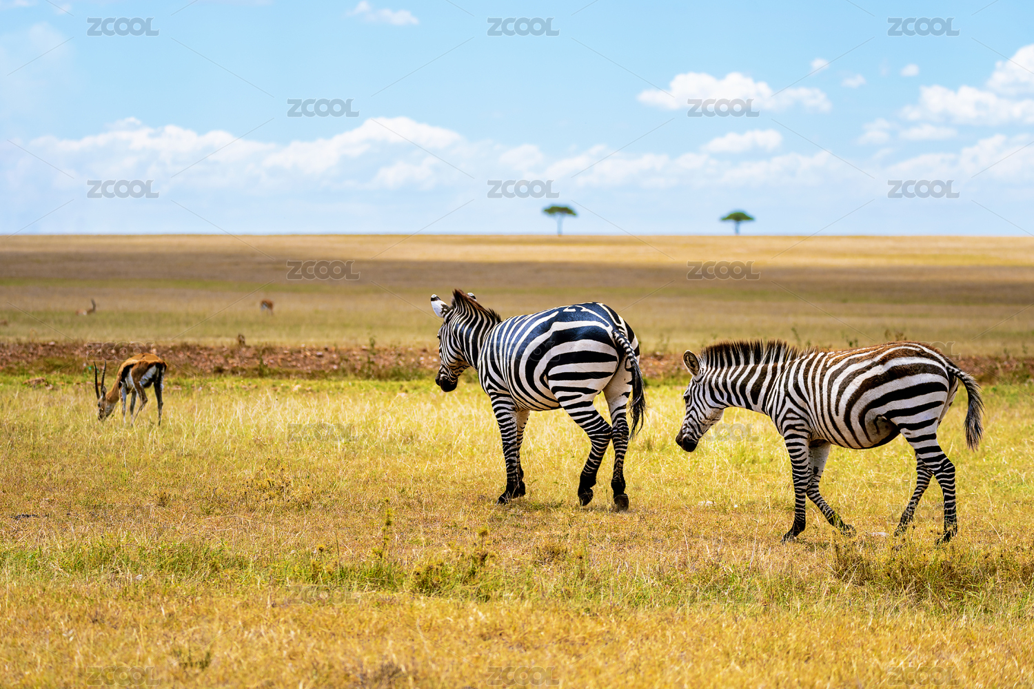 非洲草原上兩只行走在一起的斑馬