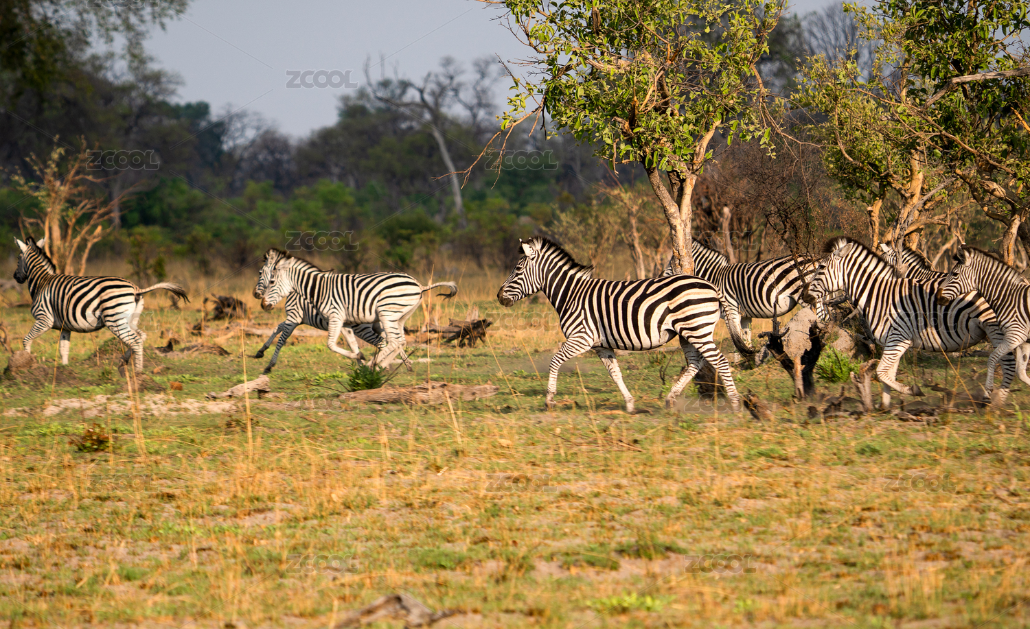 非洲博茨瓦納奧卡萬斑馬群奔跑