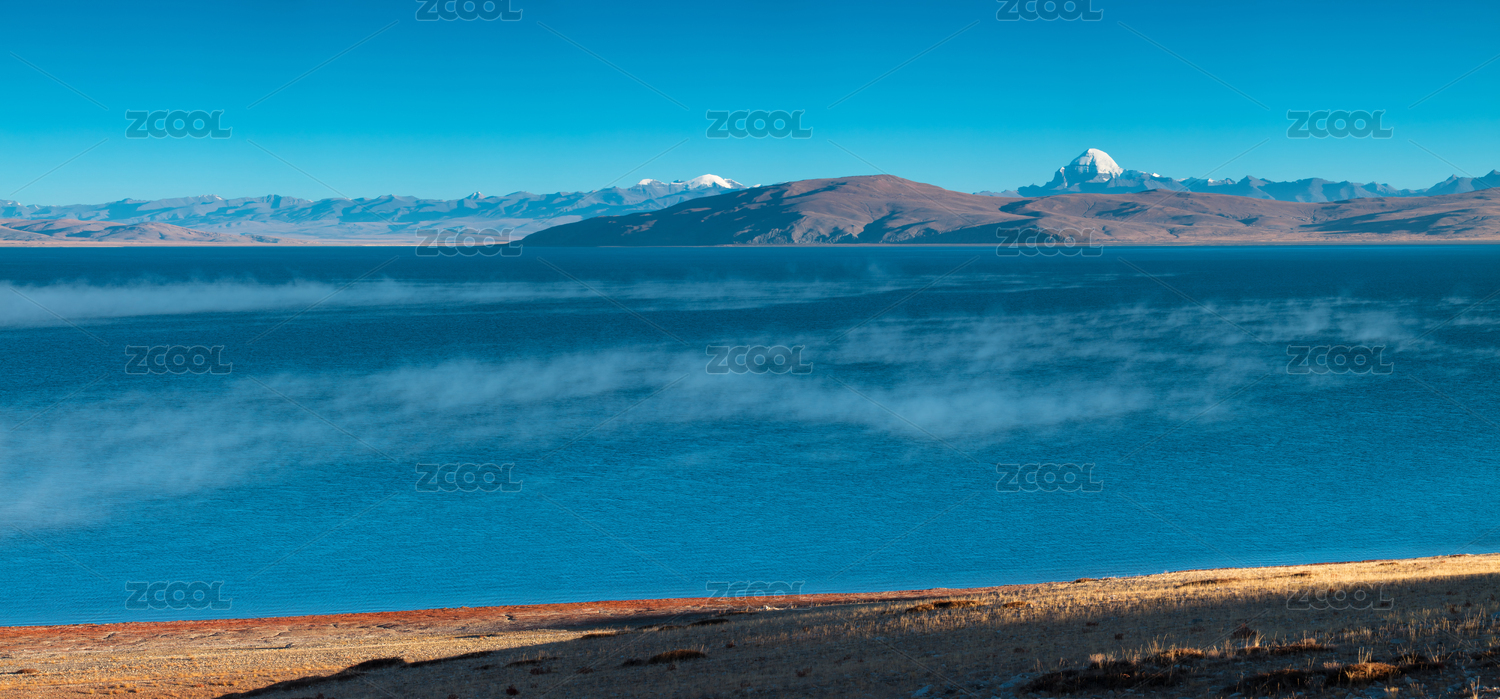 中國西藏阿里拉昂措的清晨,遠(yuǎn)處岡仁波齊峰