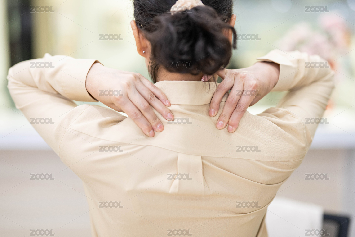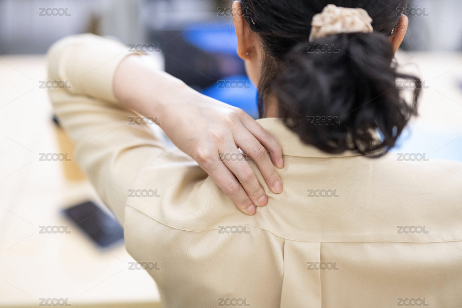 腰酸背疼按摩肩膀的女人