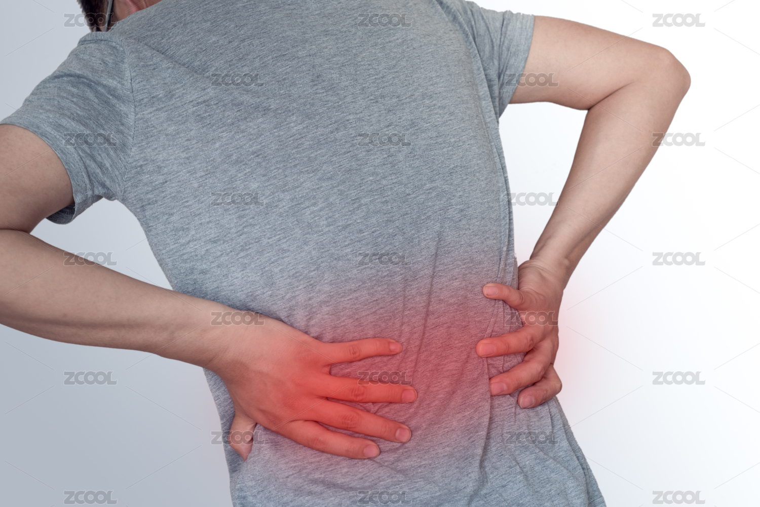 男人手捂著腰部彎腰,常見疾病腰酸腰痛圖片