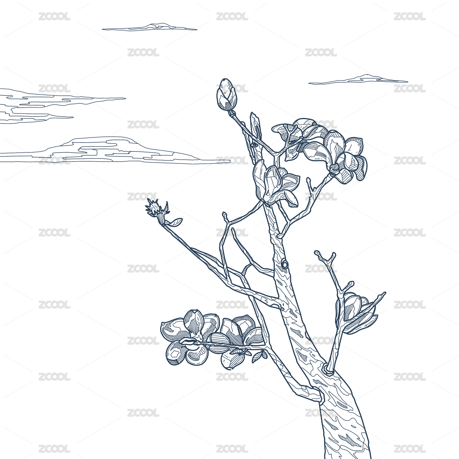 青龍古廟旁的玉蘭樹花開單線