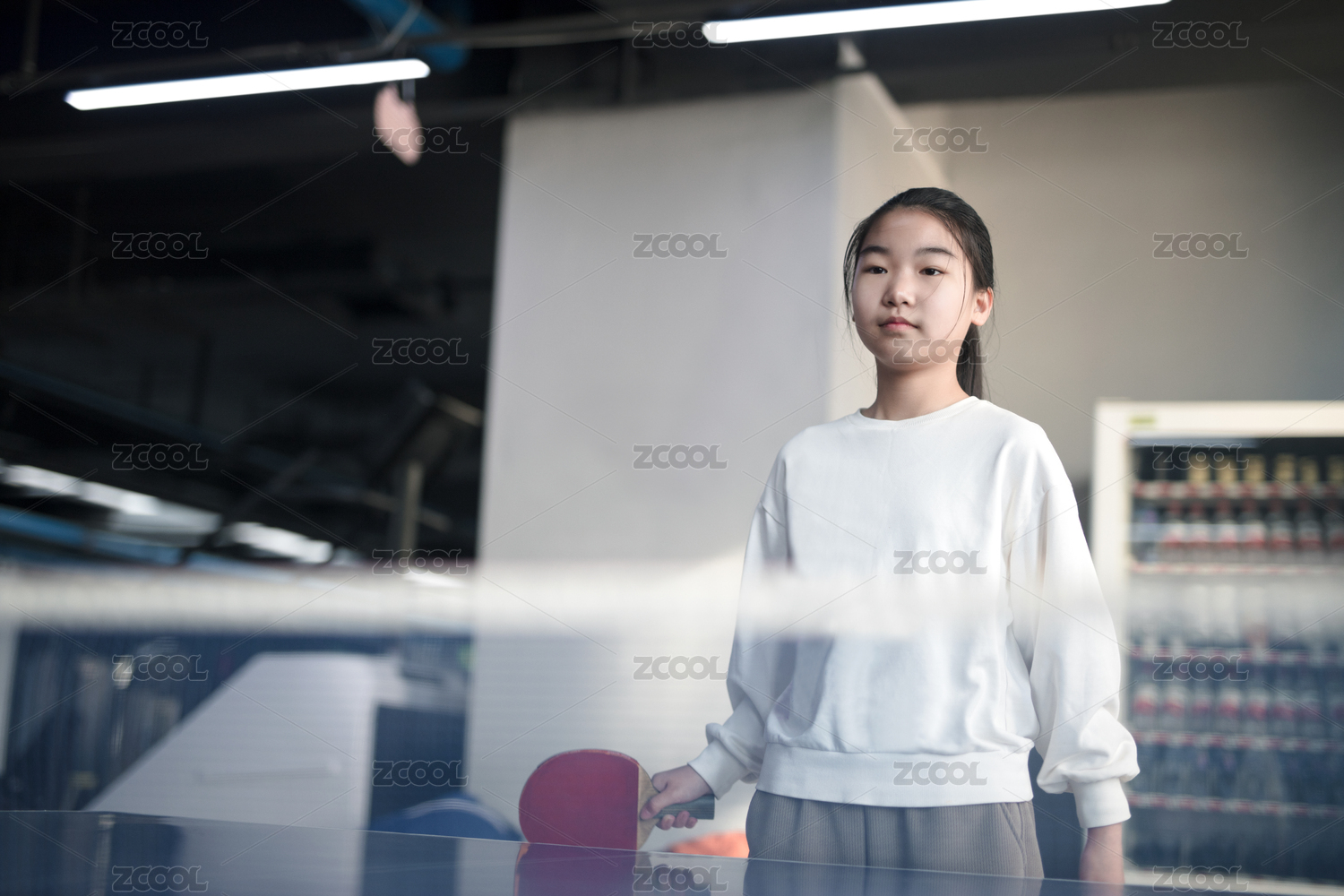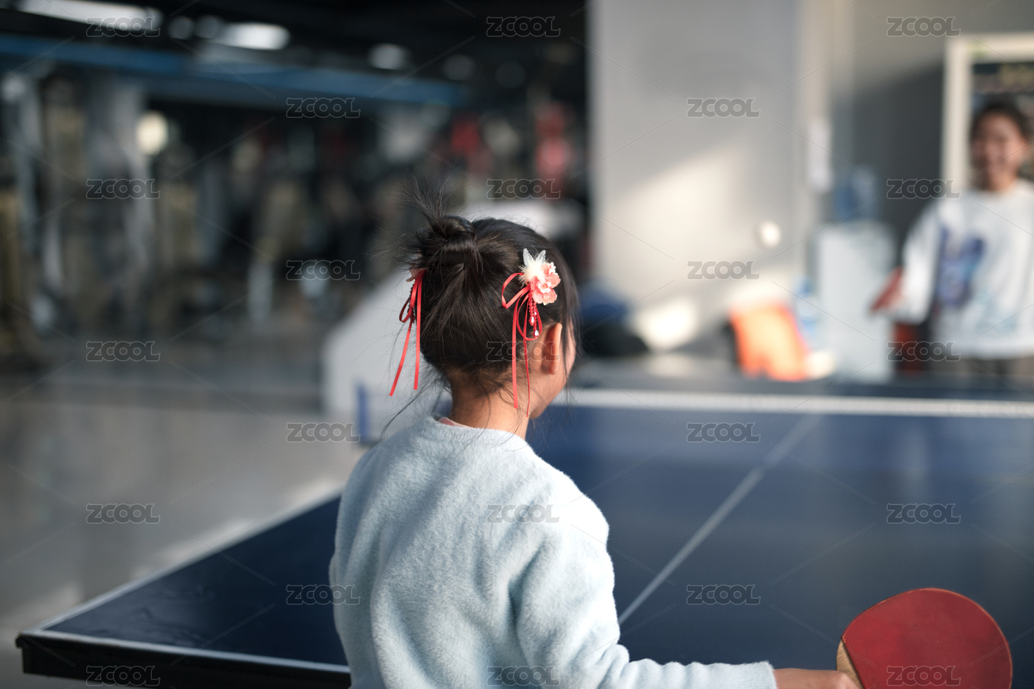 打乒乓球的小姑娘在室內(nèi)