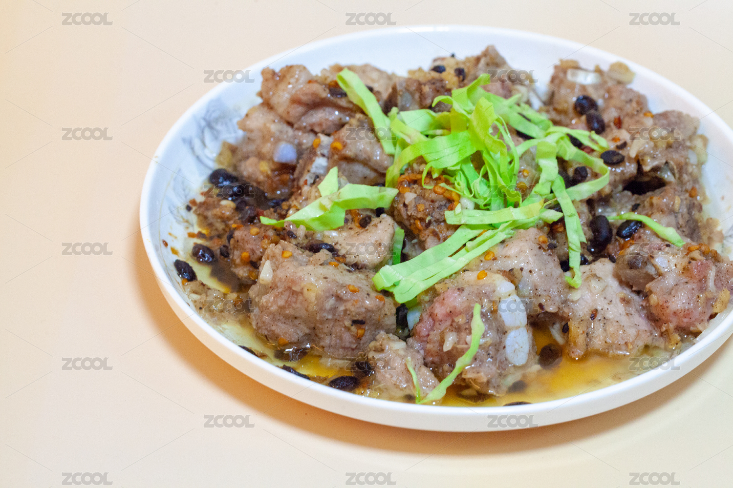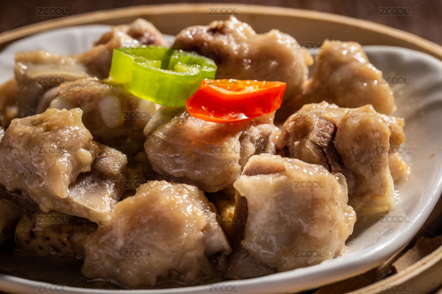 一盤中國傳統(tǒng)美食清蒸排骨特寫