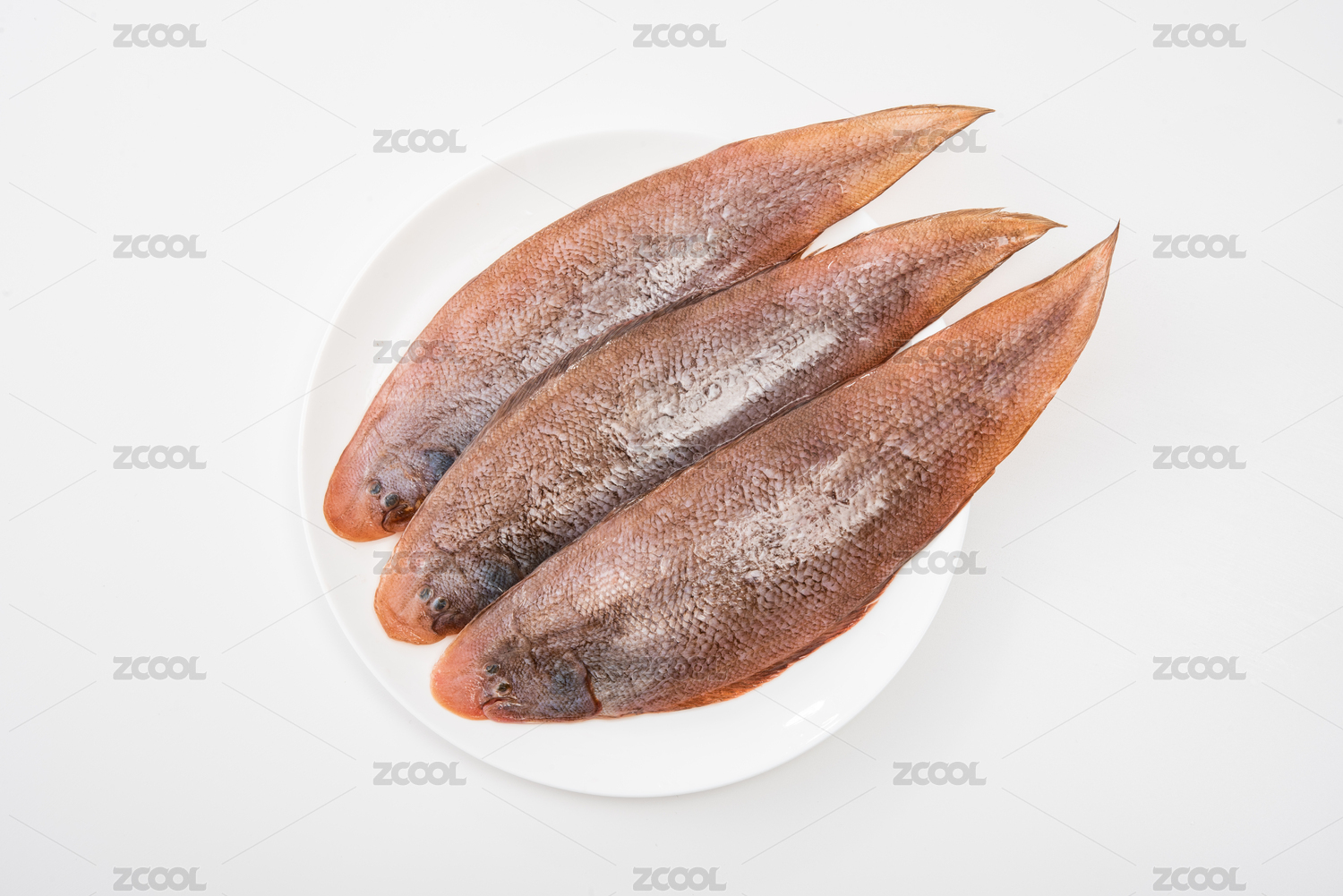 俯拍白色背景上的龍利魚