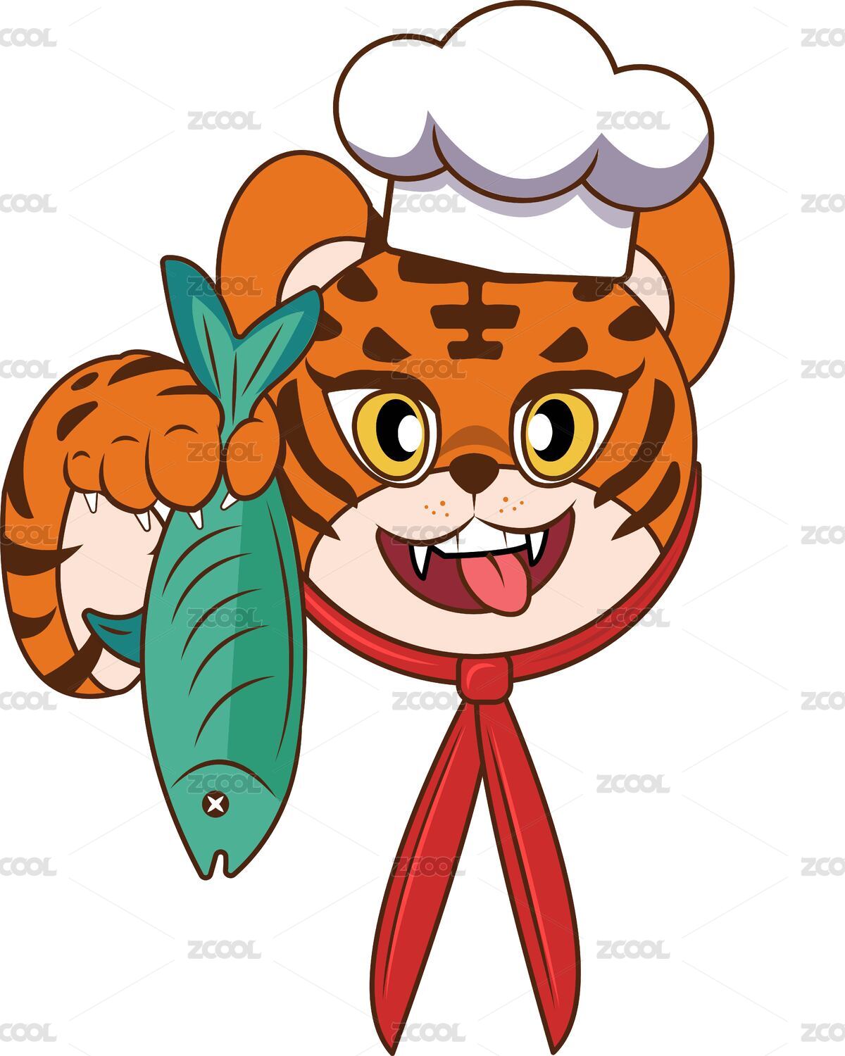 虎大廚拿著魚矢量插畫