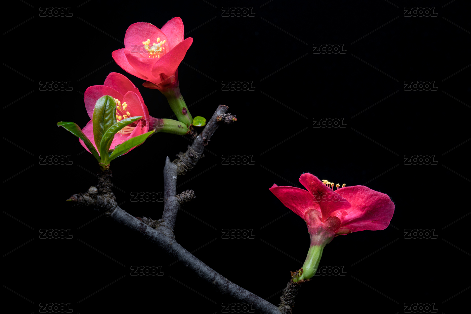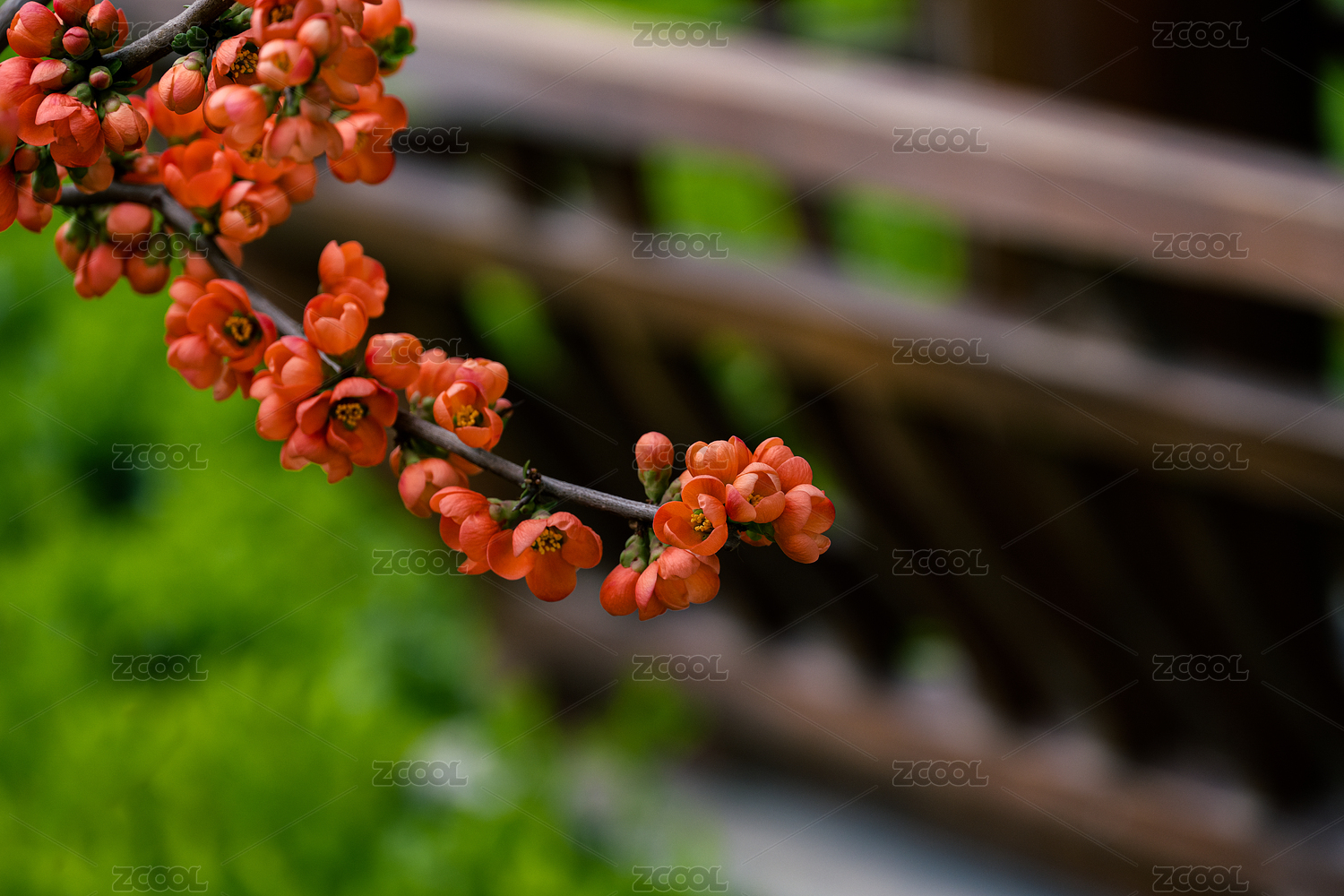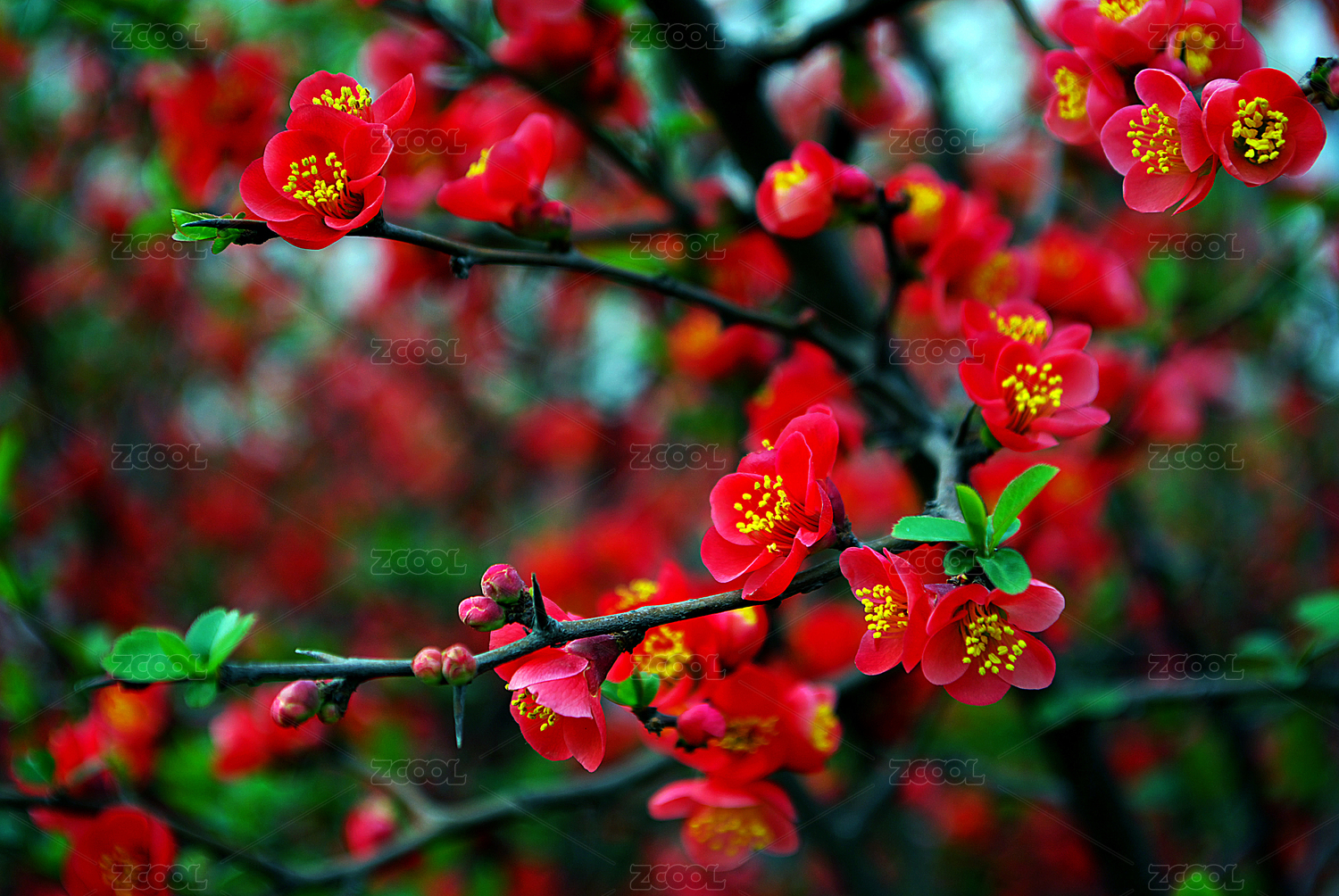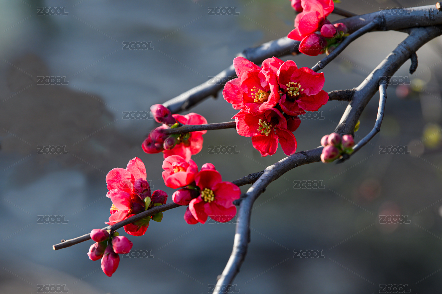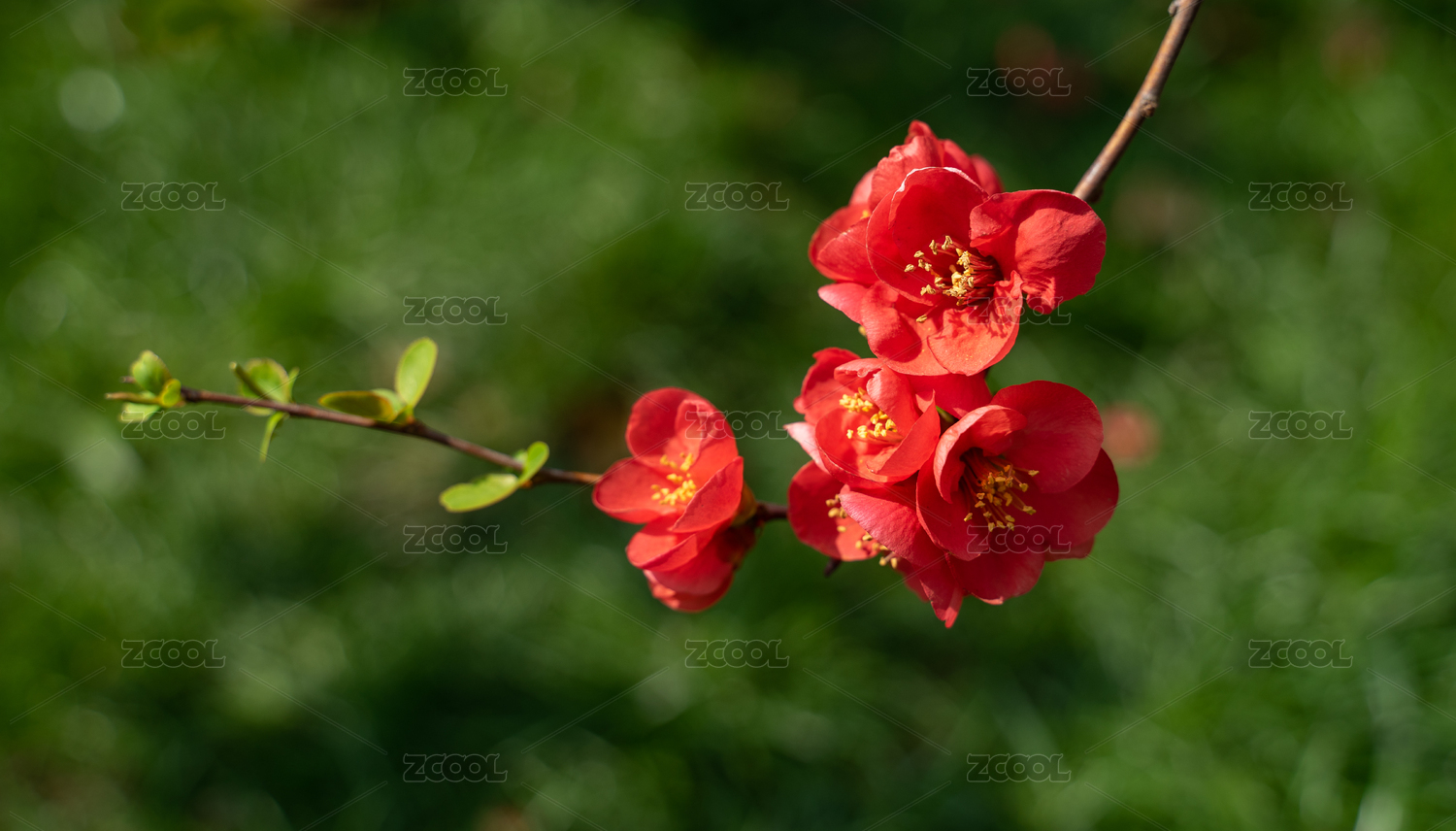 春天盛開(kāi)在枝頭的紅色貼梗海棠花