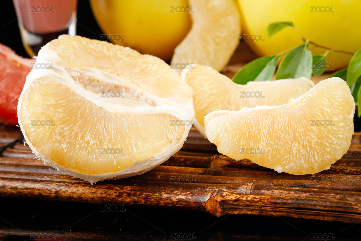 云南青蜜柚剝開半個果肉帶綠葉子白底