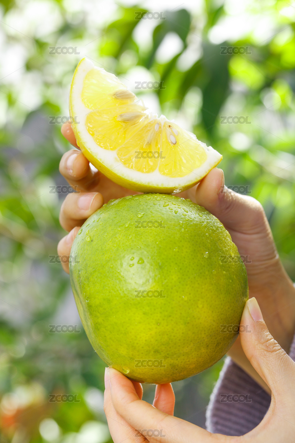 手上拿著一個完整的臺灣青葡萄柚和一塊蜜柚