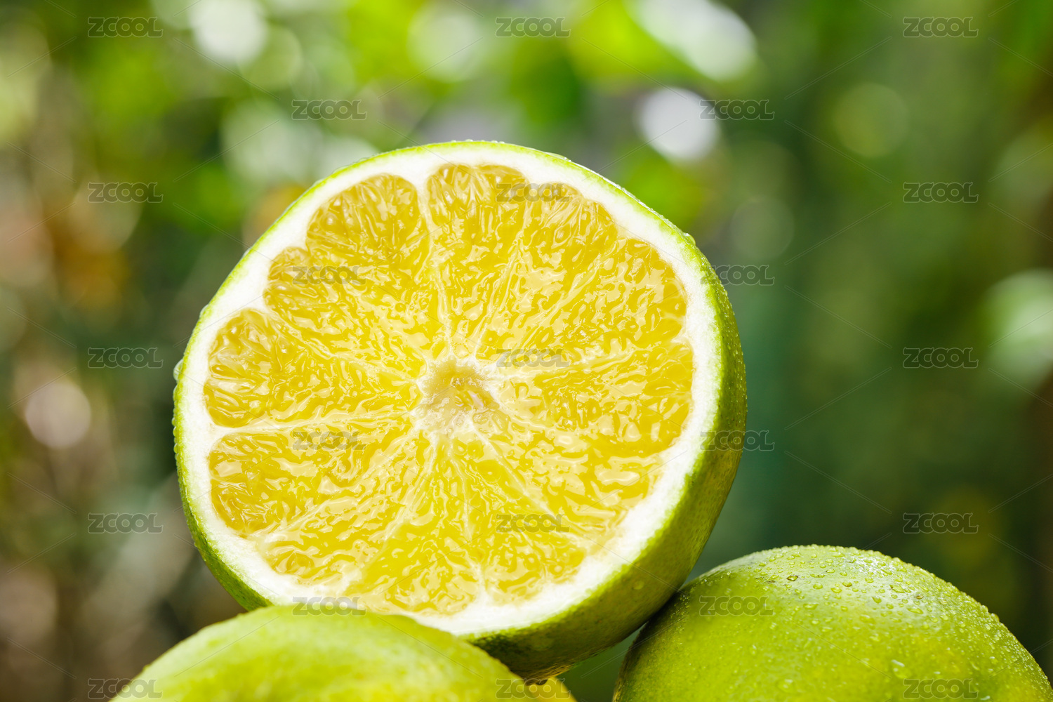 云南青蜜柚和剝開半個果肉帶綠葉子白底