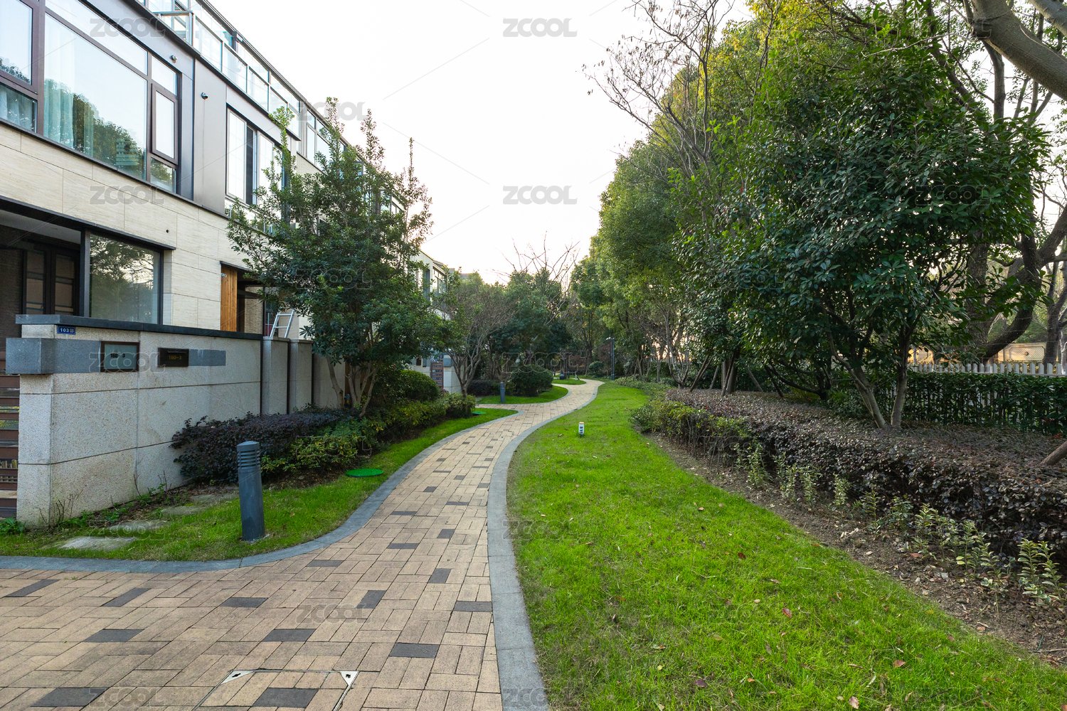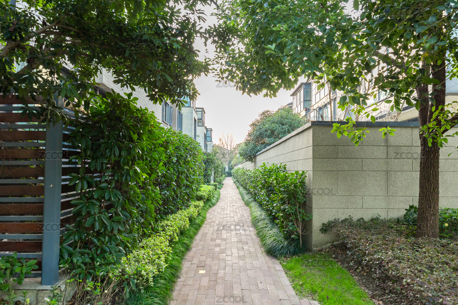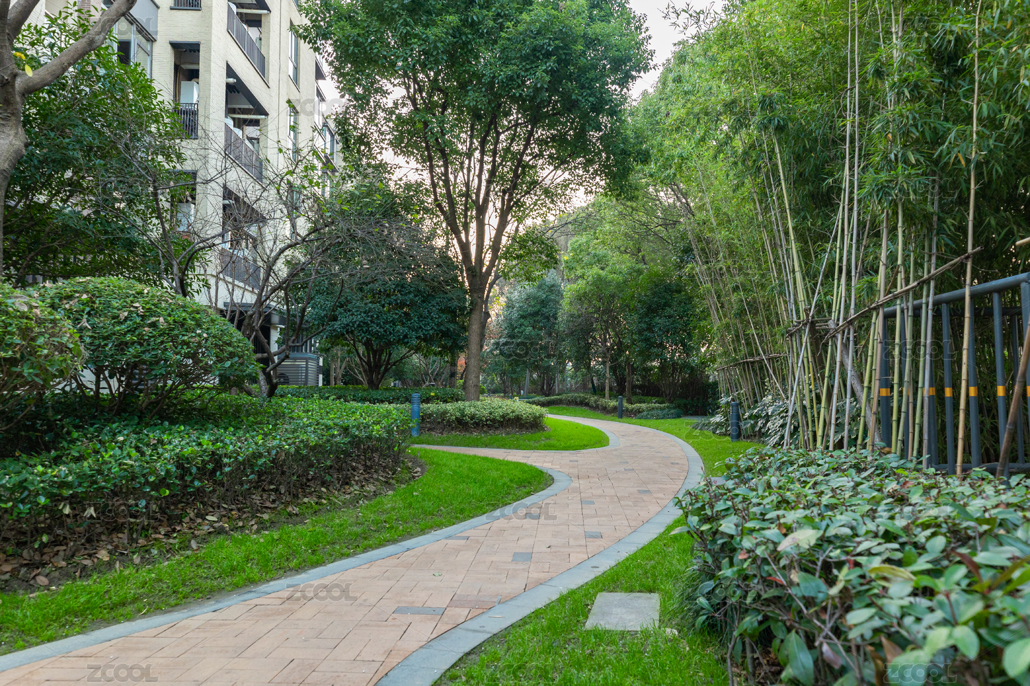 高檔社區(qū)樹蔭小路草坪