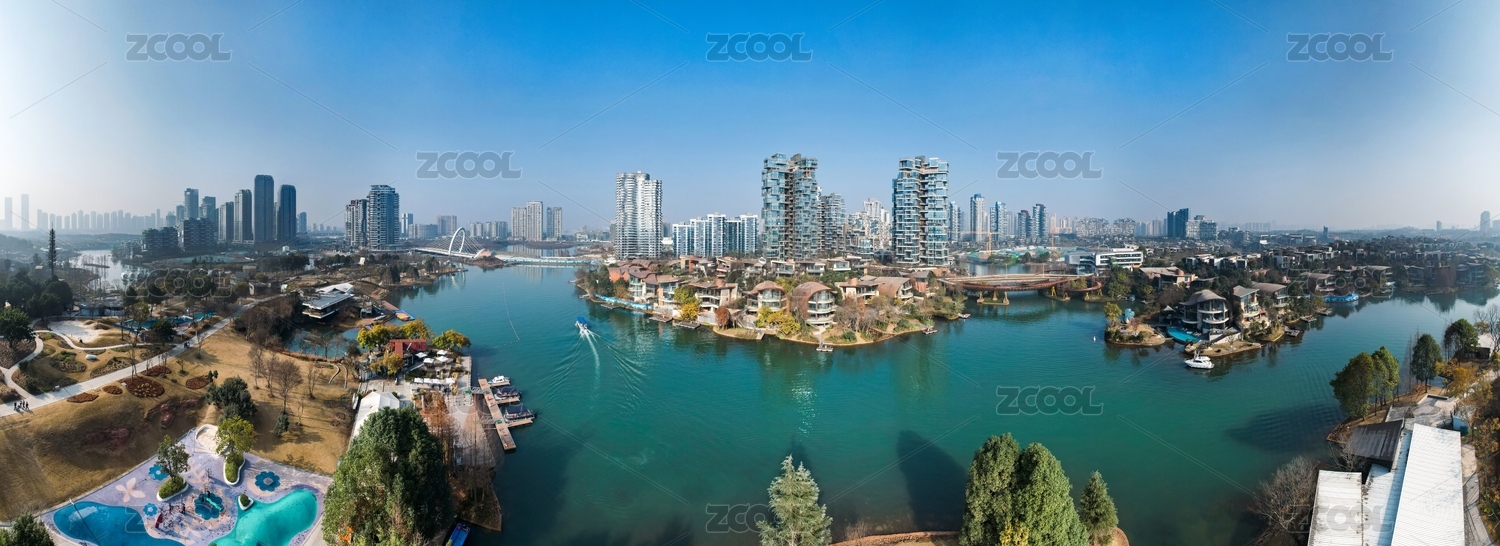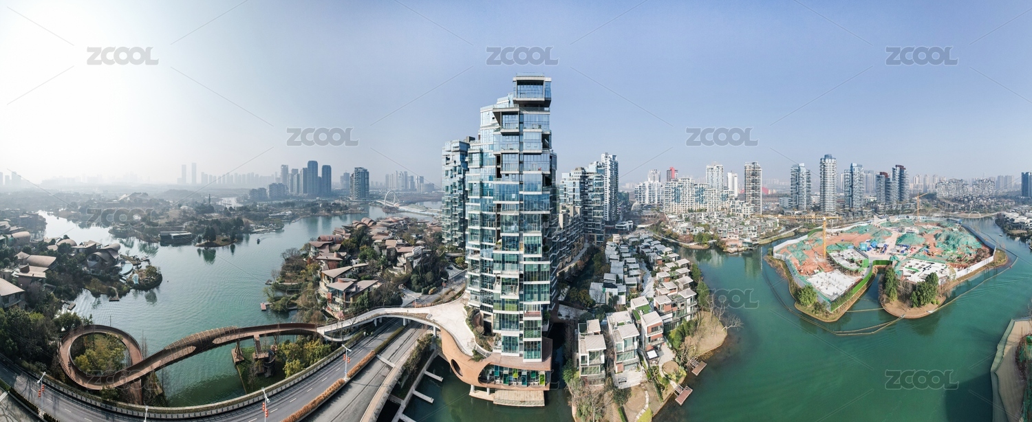 航拍四川成都天府新區(qū)麓湖的高檔社區(qū)居住環(huán)