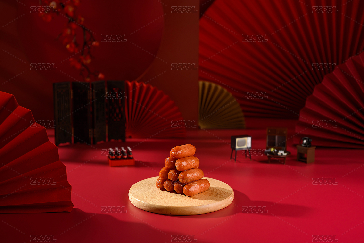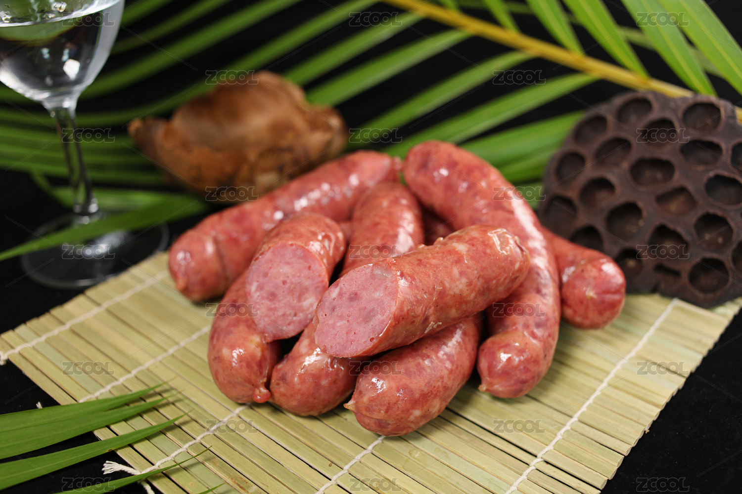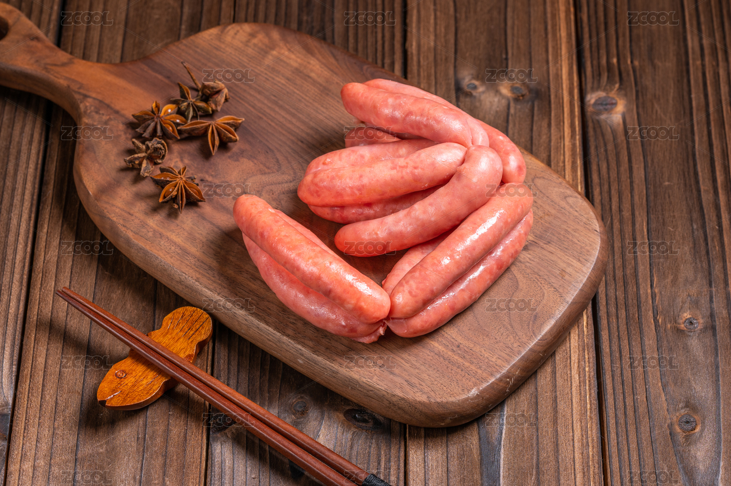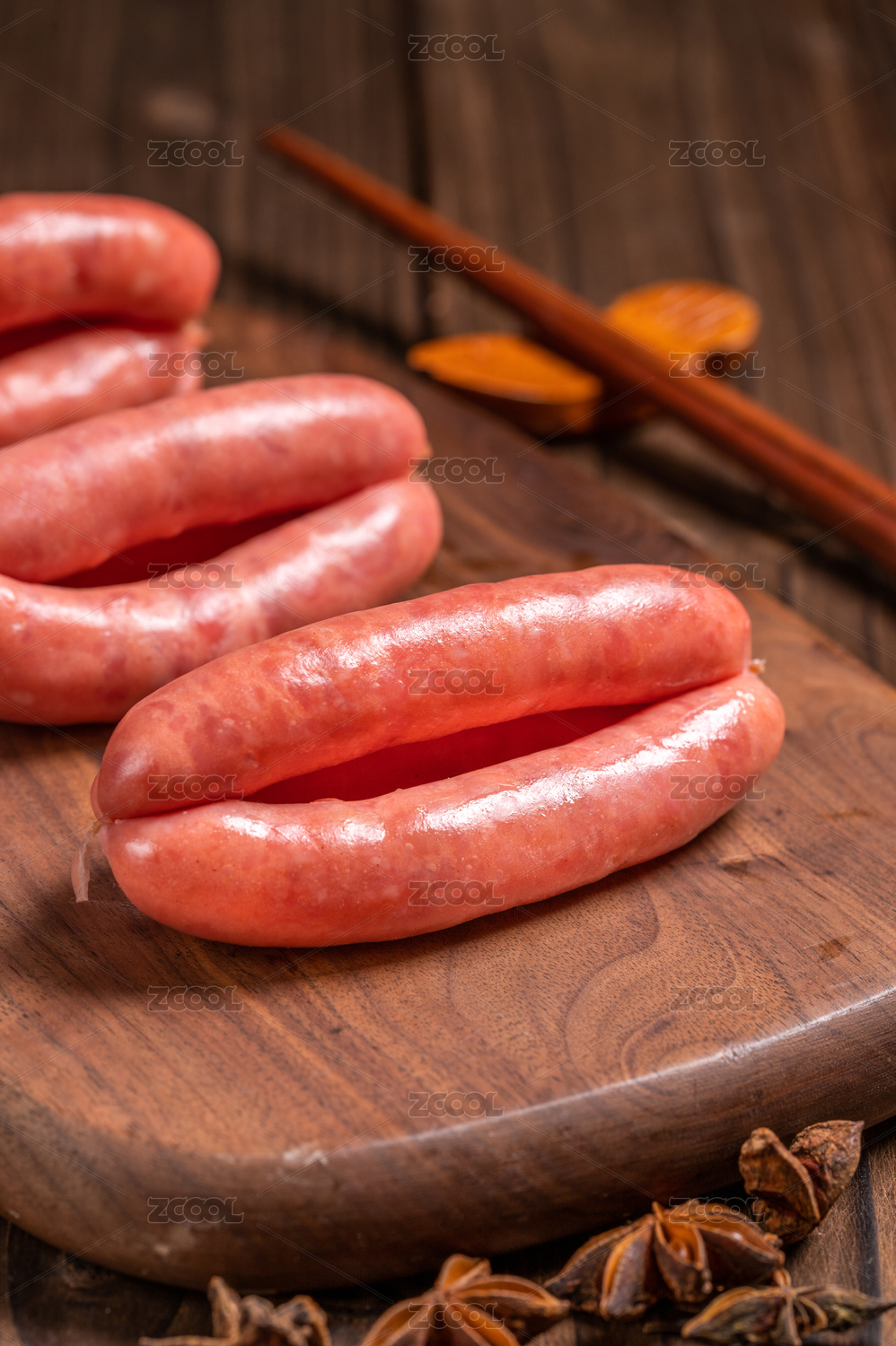木托盤上的中國(guó)臺(tái)灣香腸