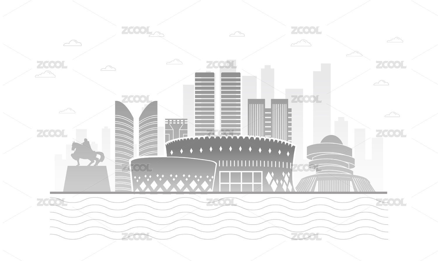 中國內(nèi)蒙古鄂爾多斯市城市矢量插畫網(wǎng)頁版