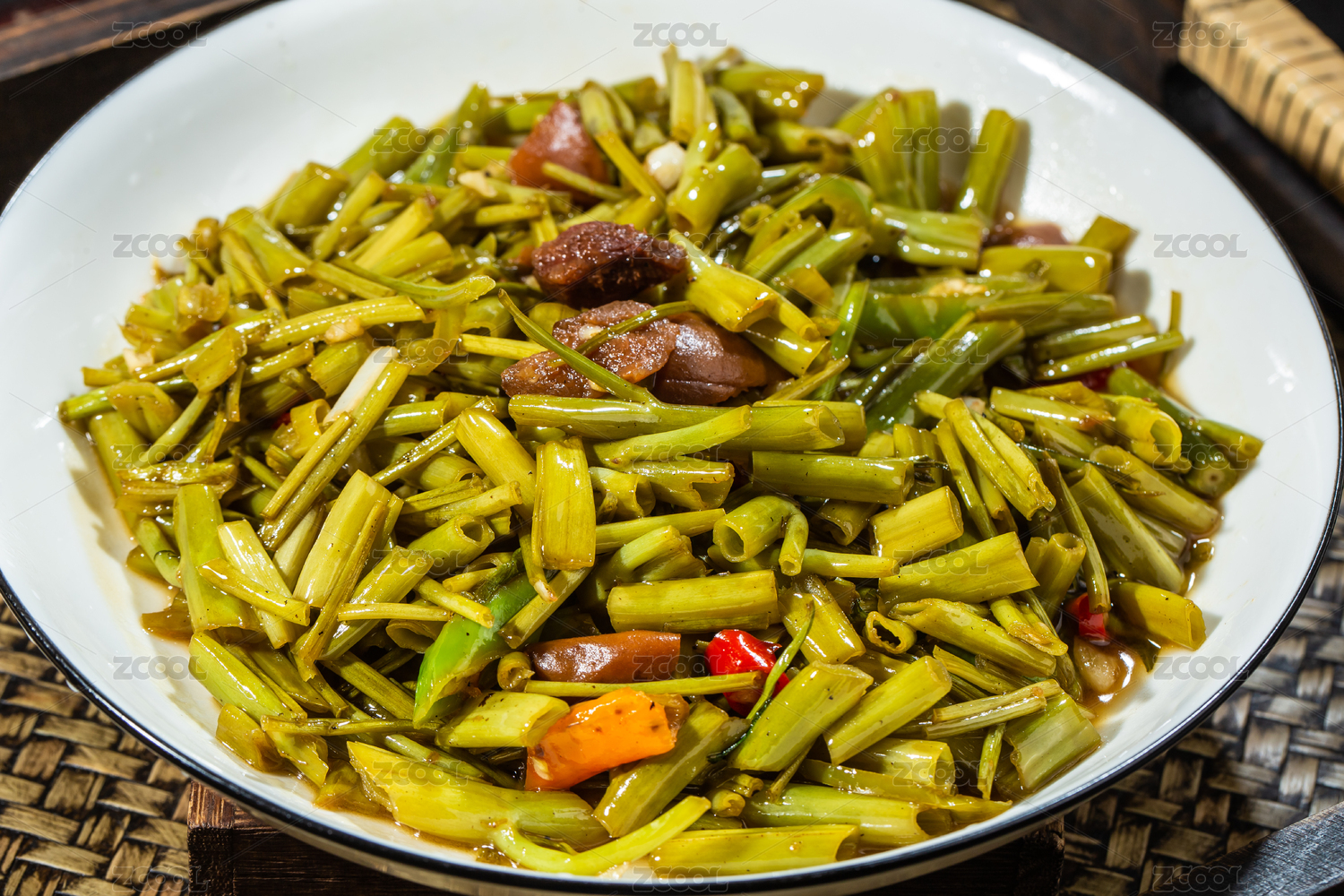 家常小炒菜肴空心菜梗炒回鍋肉