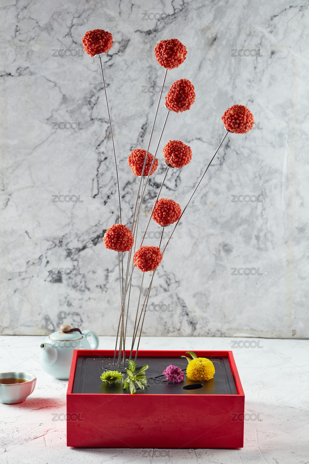 一盤荔枝芝士蝦球