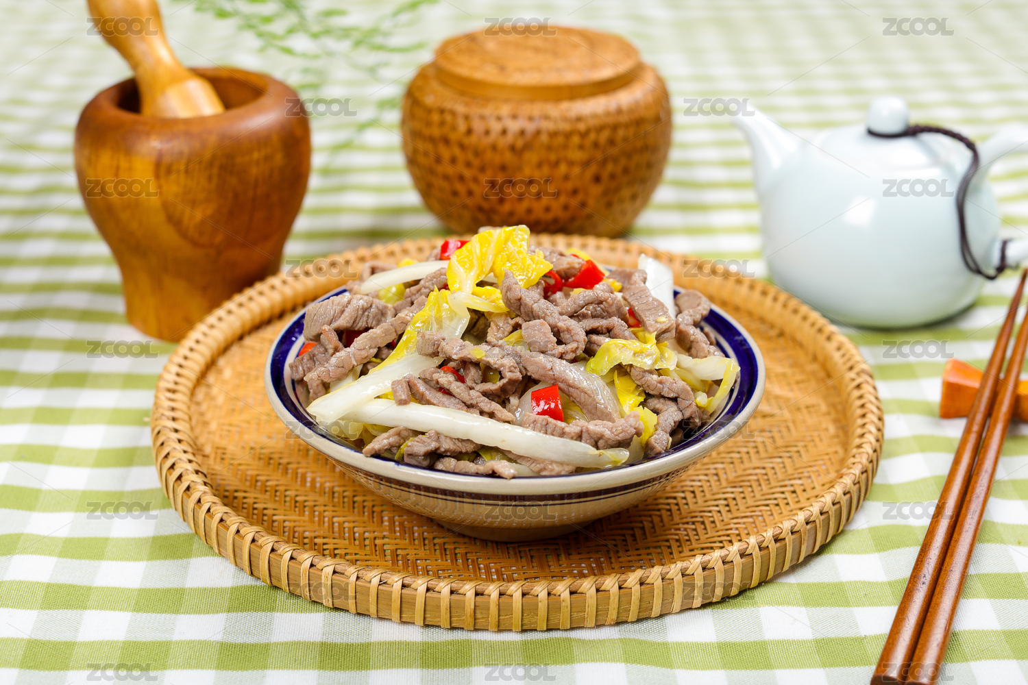 特色農(nóng)家菜白菜絲炒牛肉絲