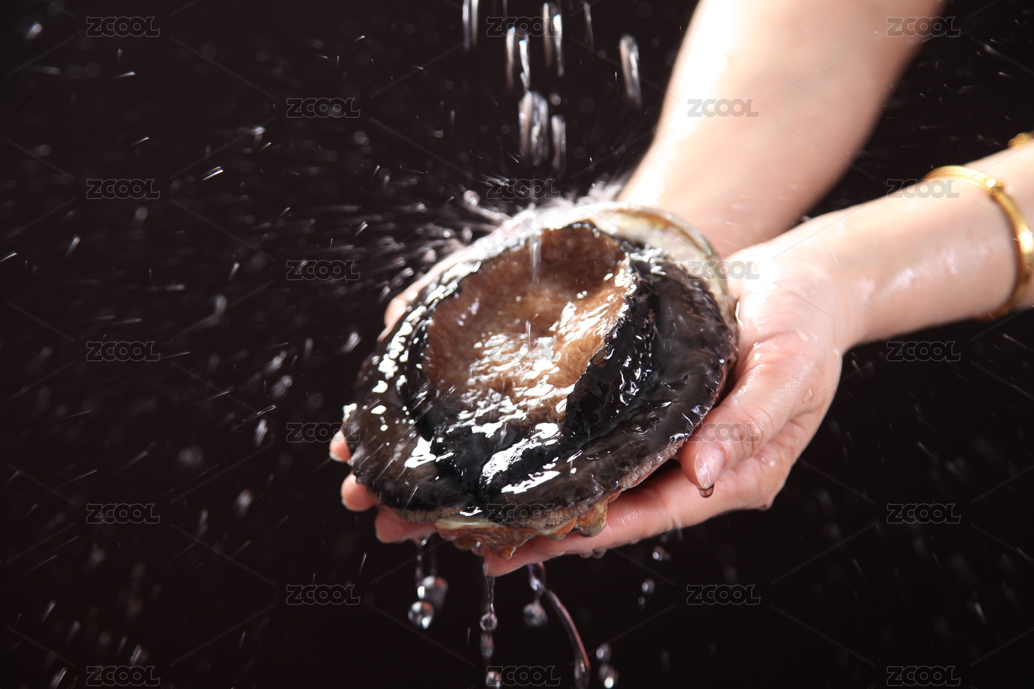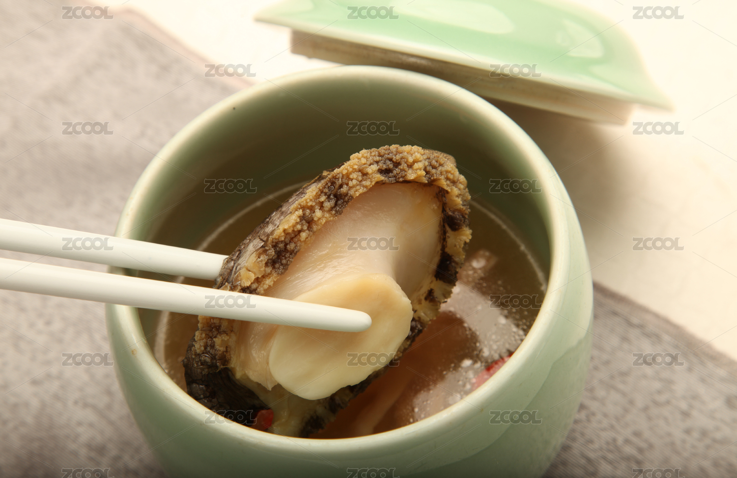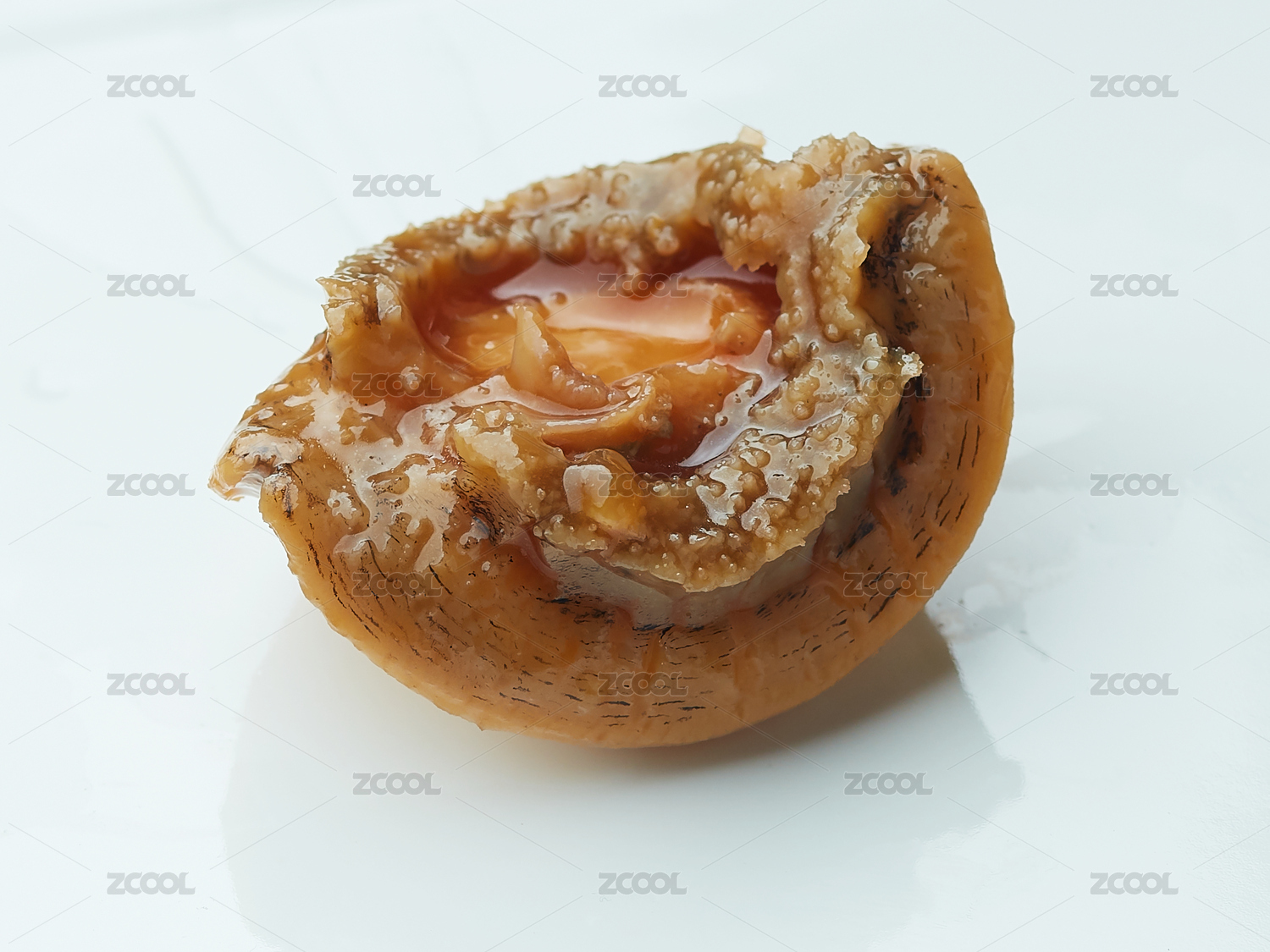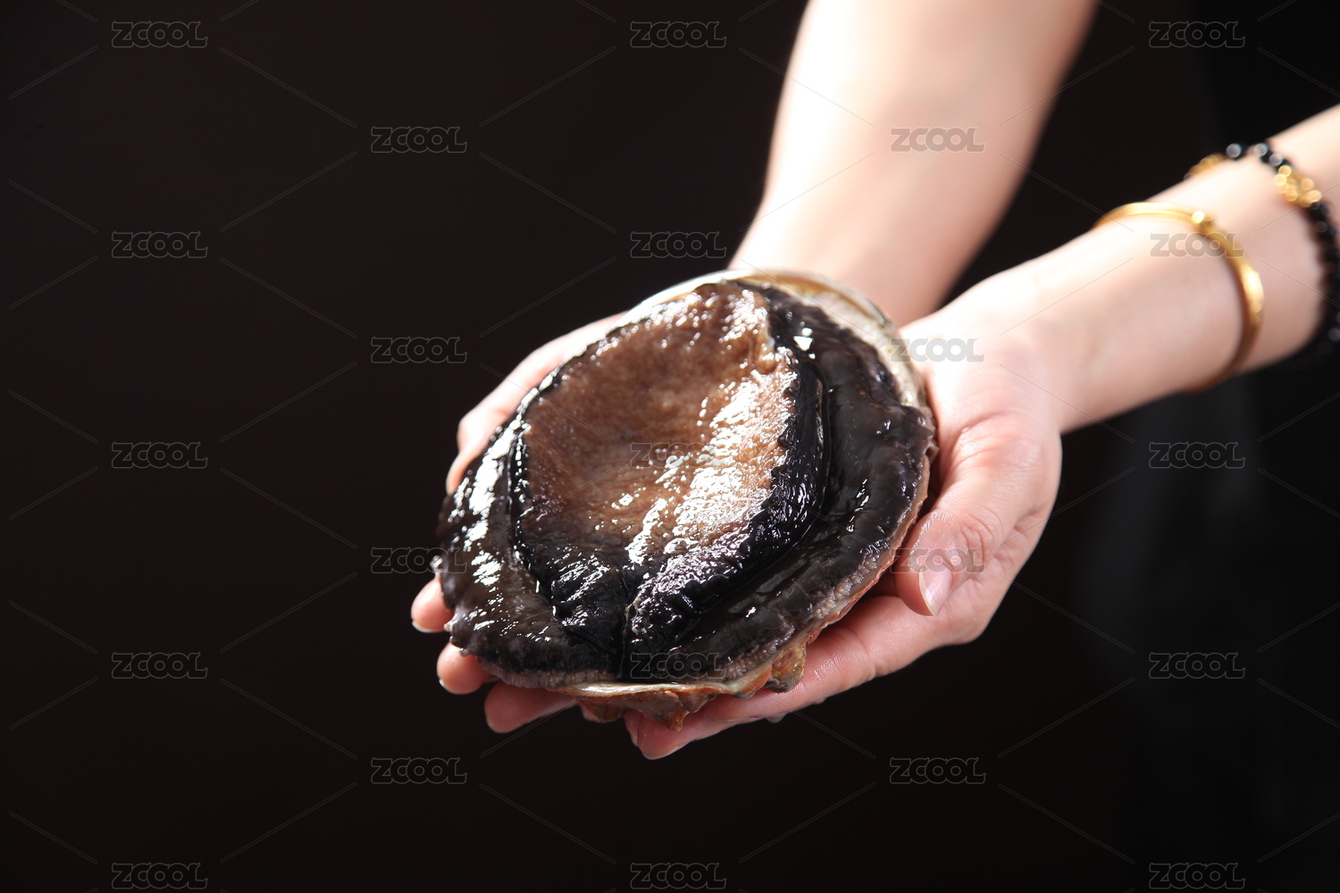 淺灰色背景上黑色圓盤中的堂灼澳洲鮑魚