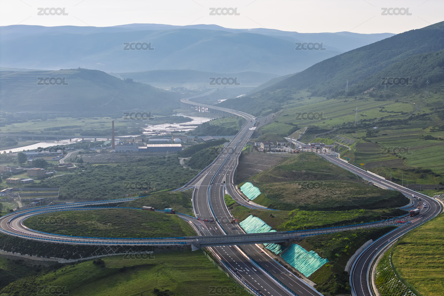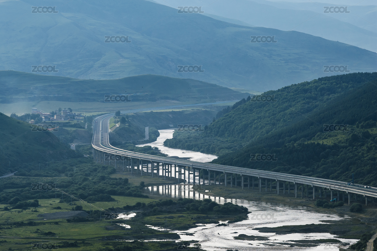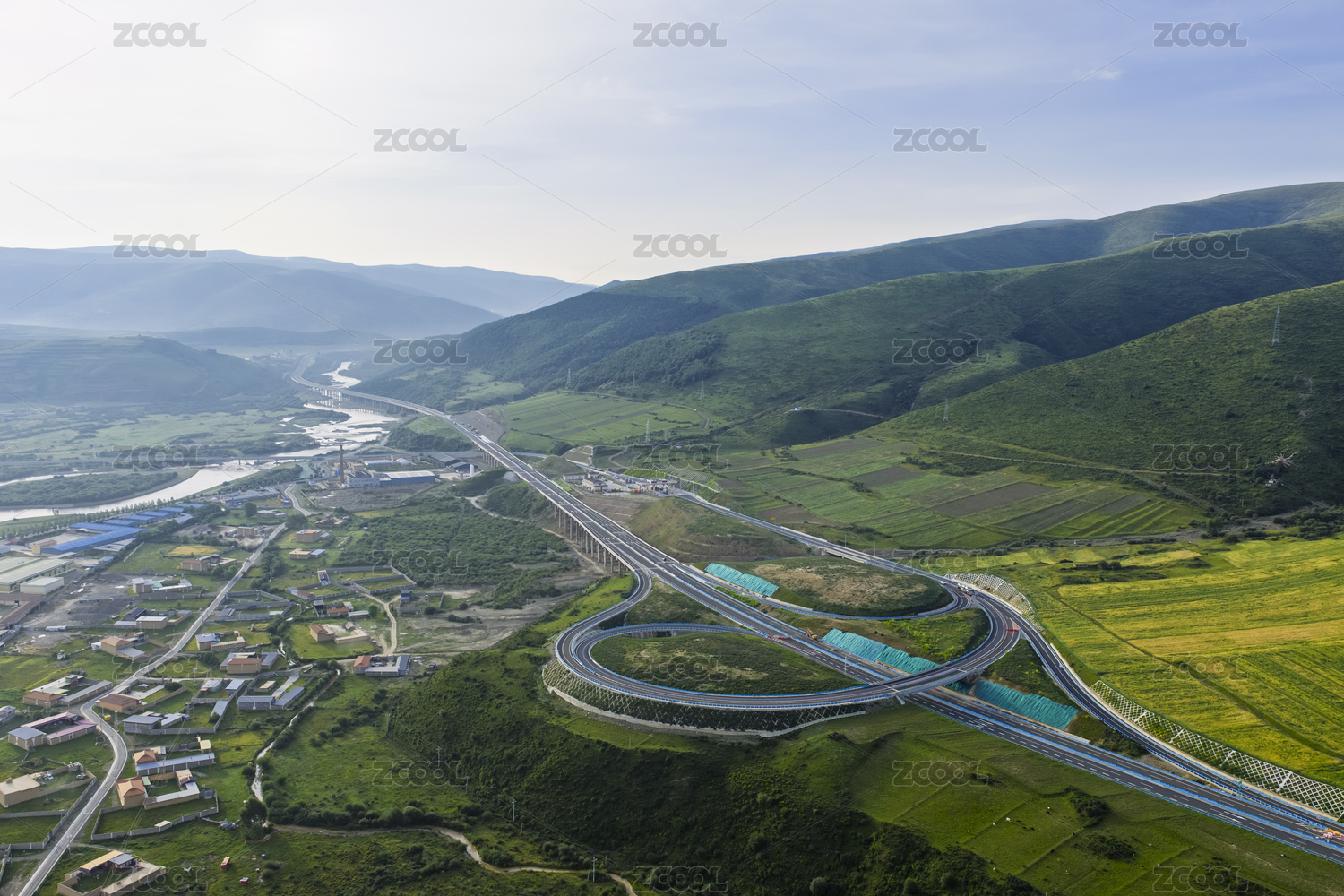 高速公路穿過(guò)四川湖泊丘陵地貌