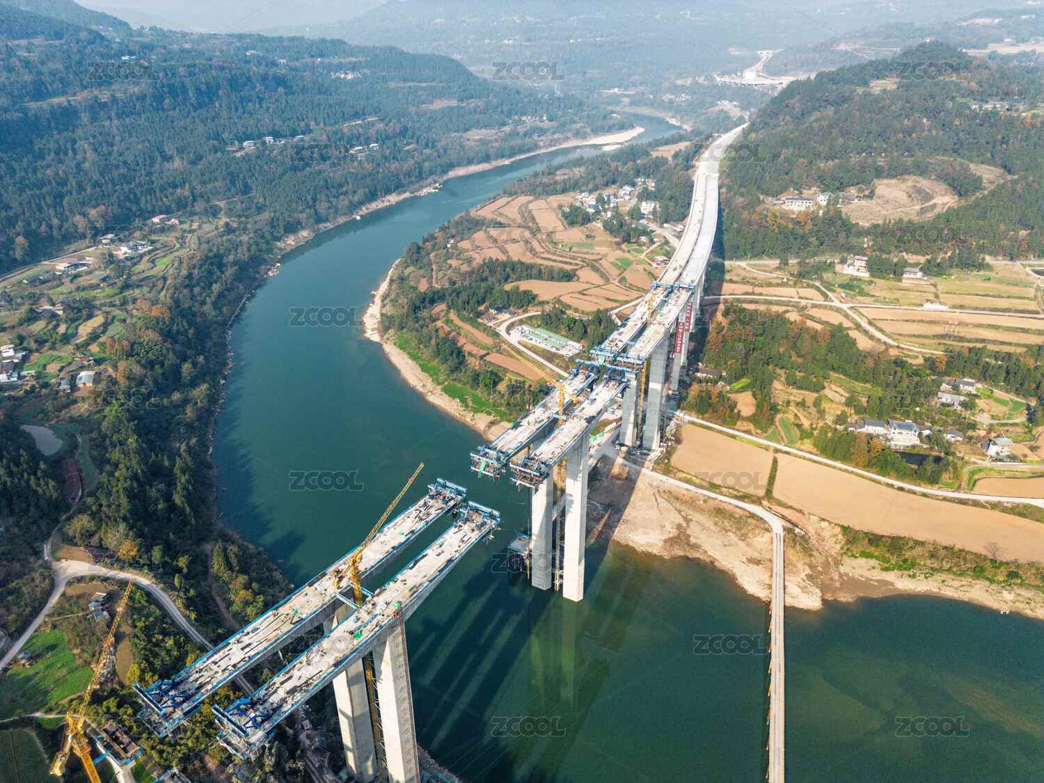 四川蓉遵高速公路黃艤長(zhǎng)江大橋航拍長(zhǎng)江風(fēng)光