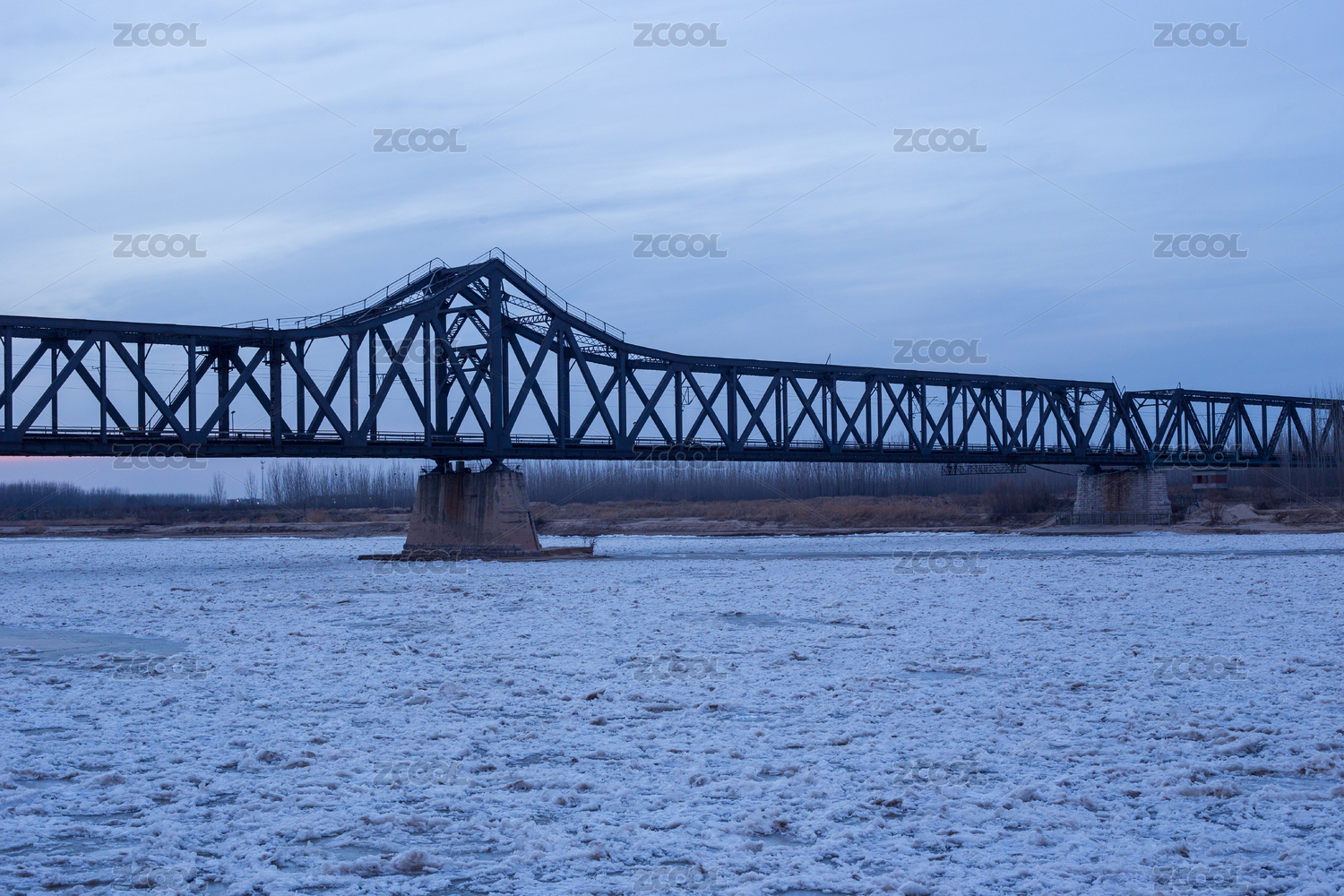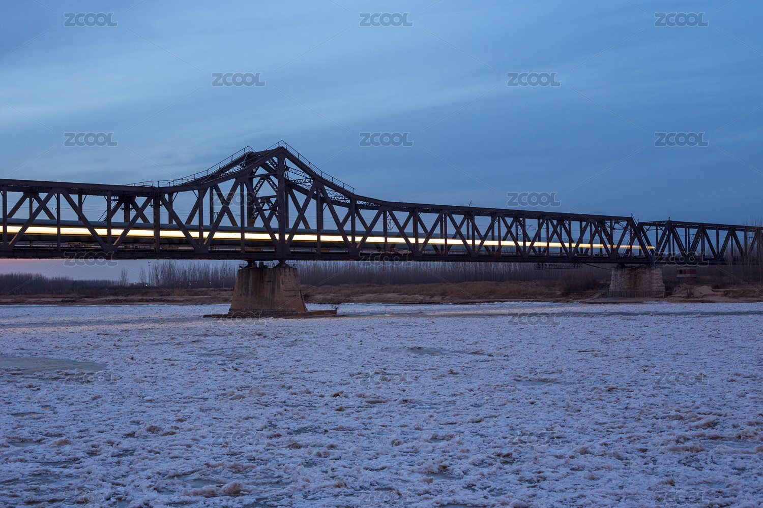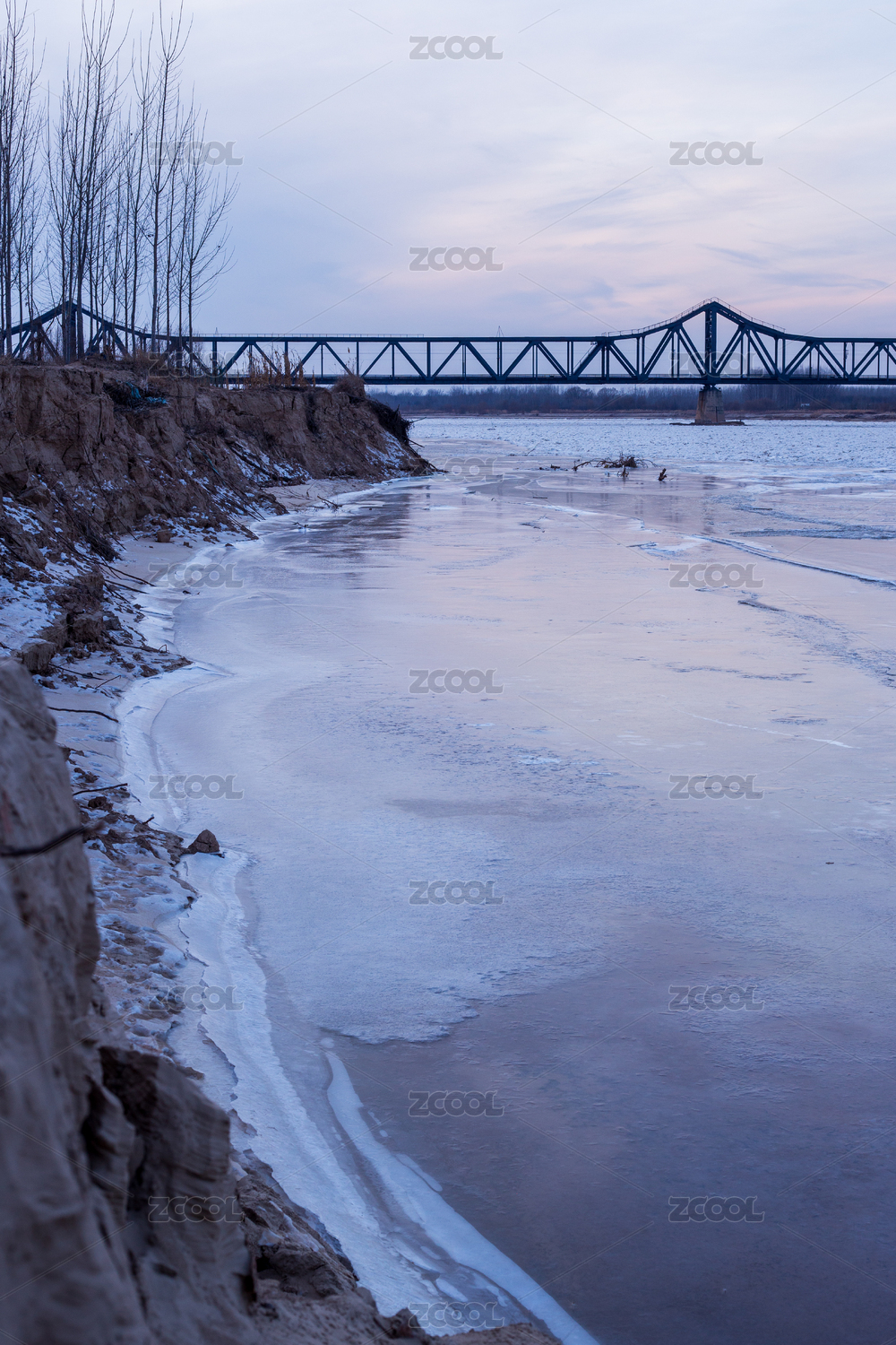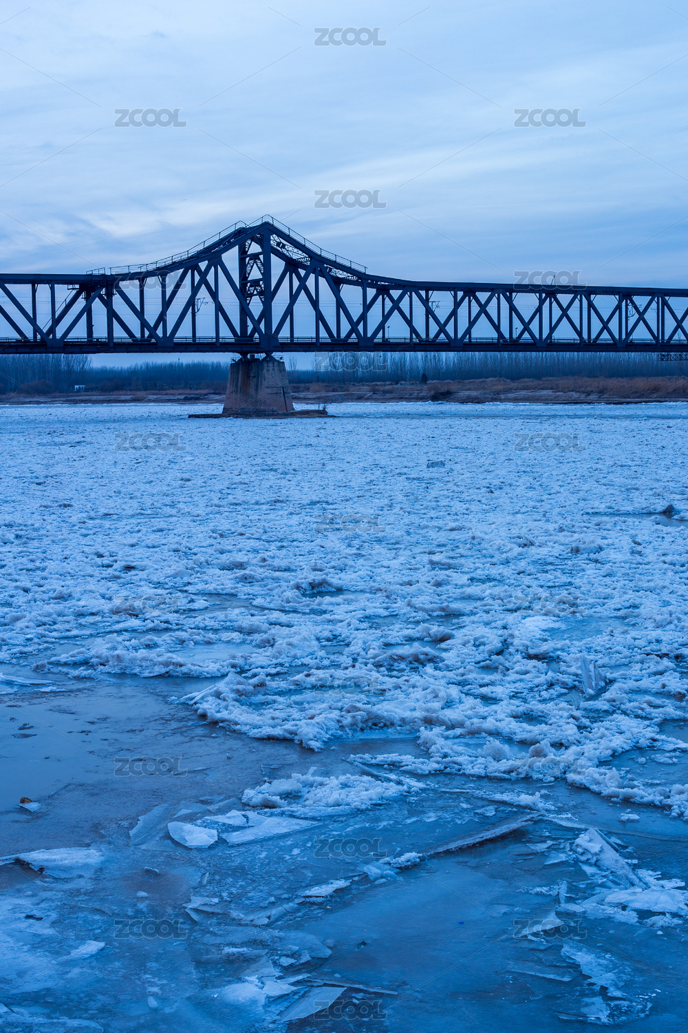 山東濟南洛口黃河鐵路大橋冬季冰封風(fēng)光