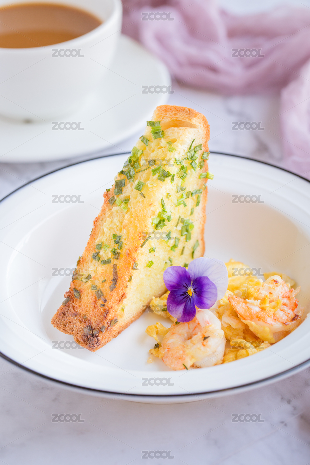 盛在白色盤子里的法式香蒜吐司