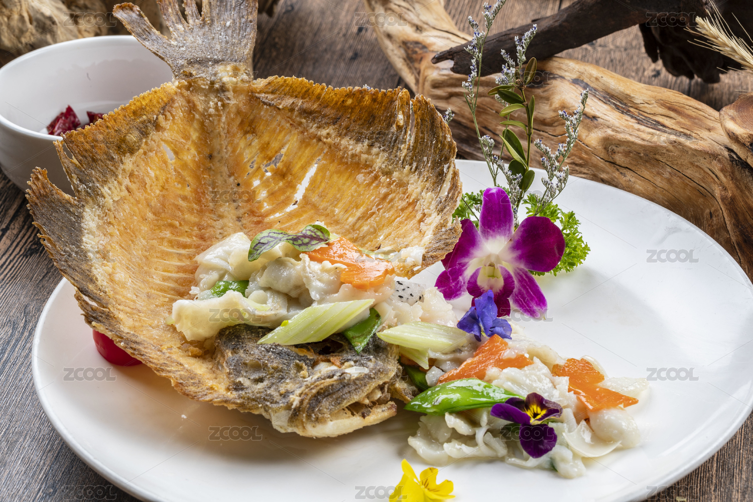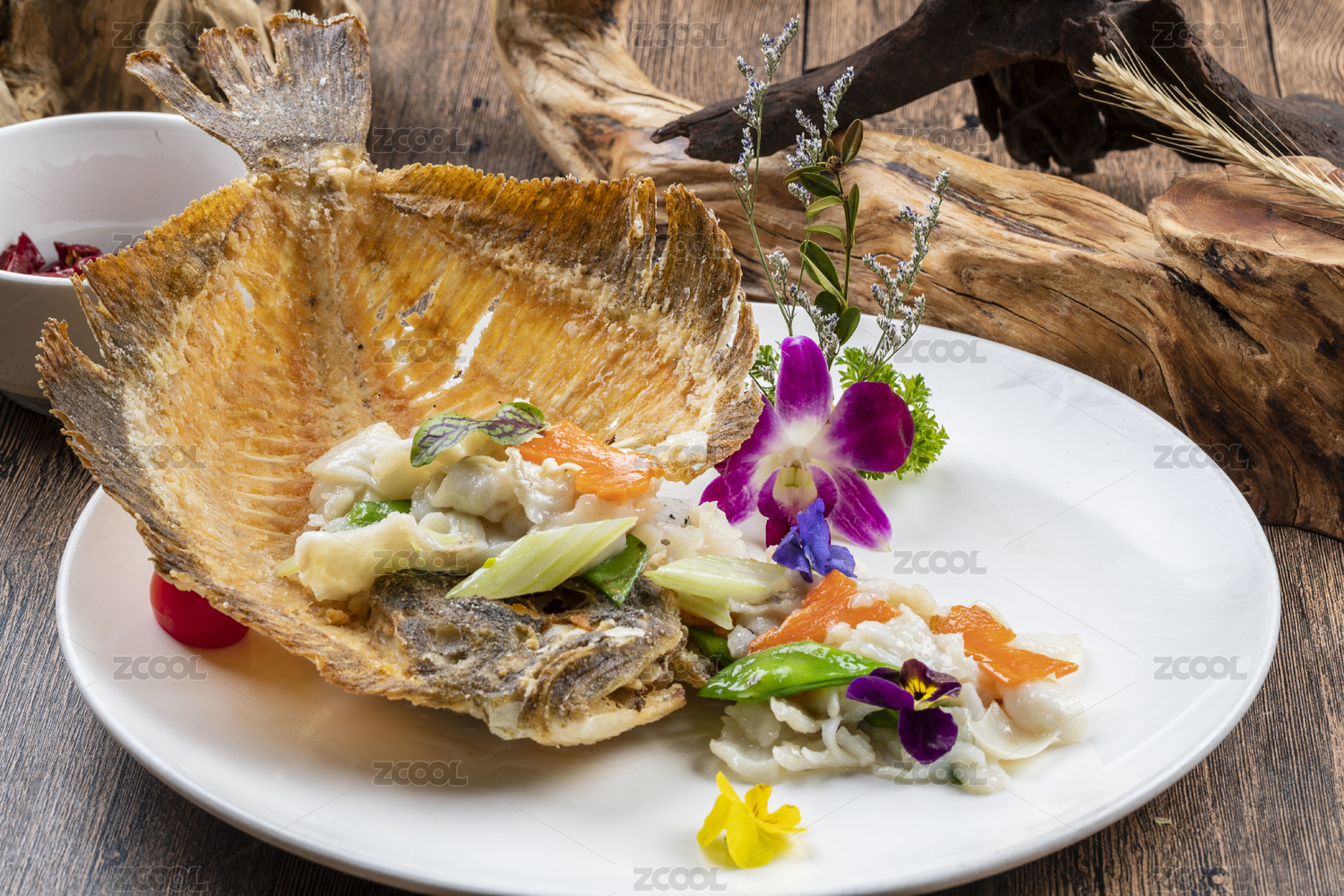 各種中餐的美食特寫料理放大圖片油炸魚排