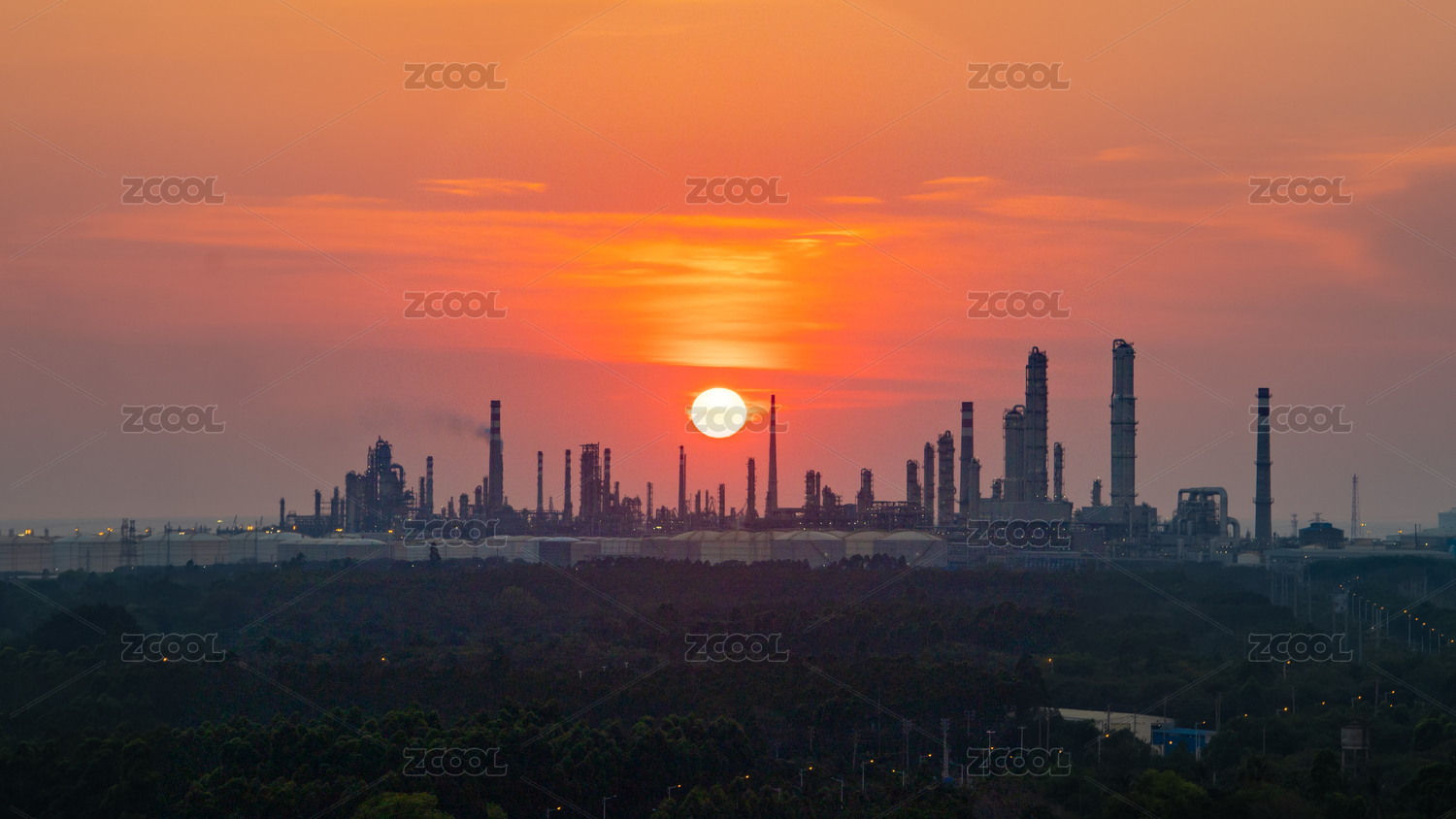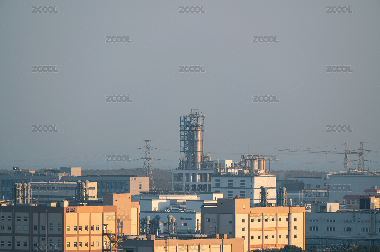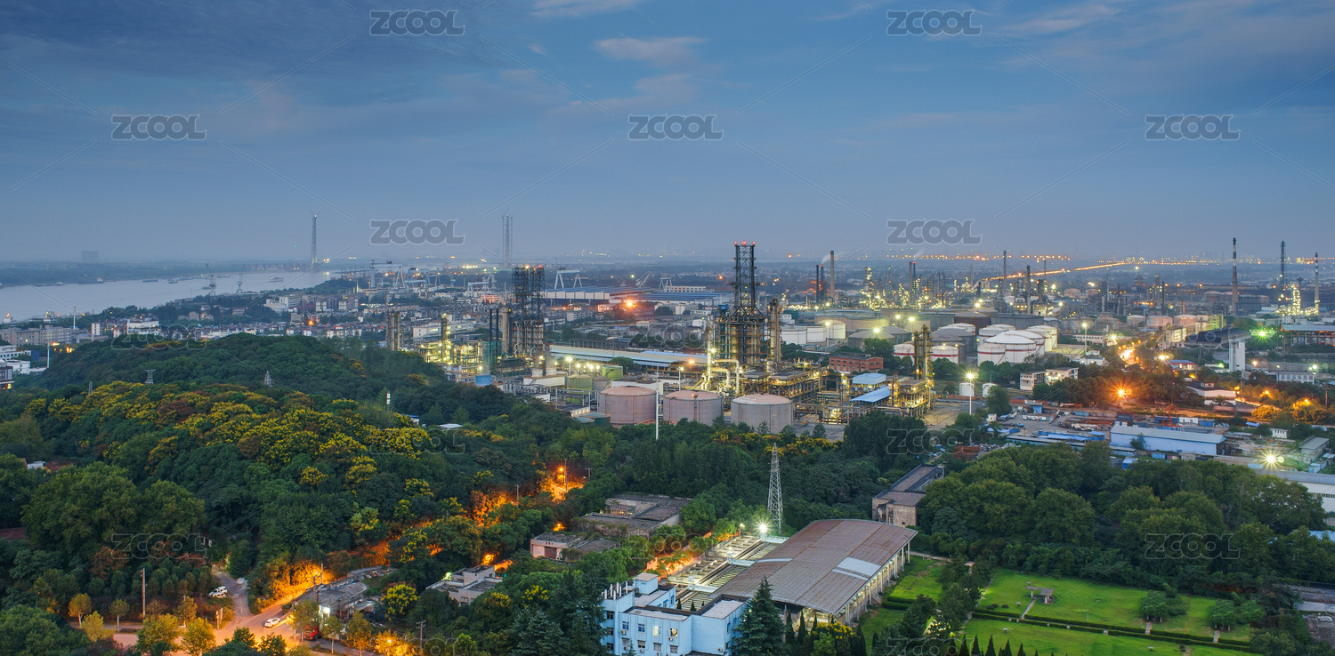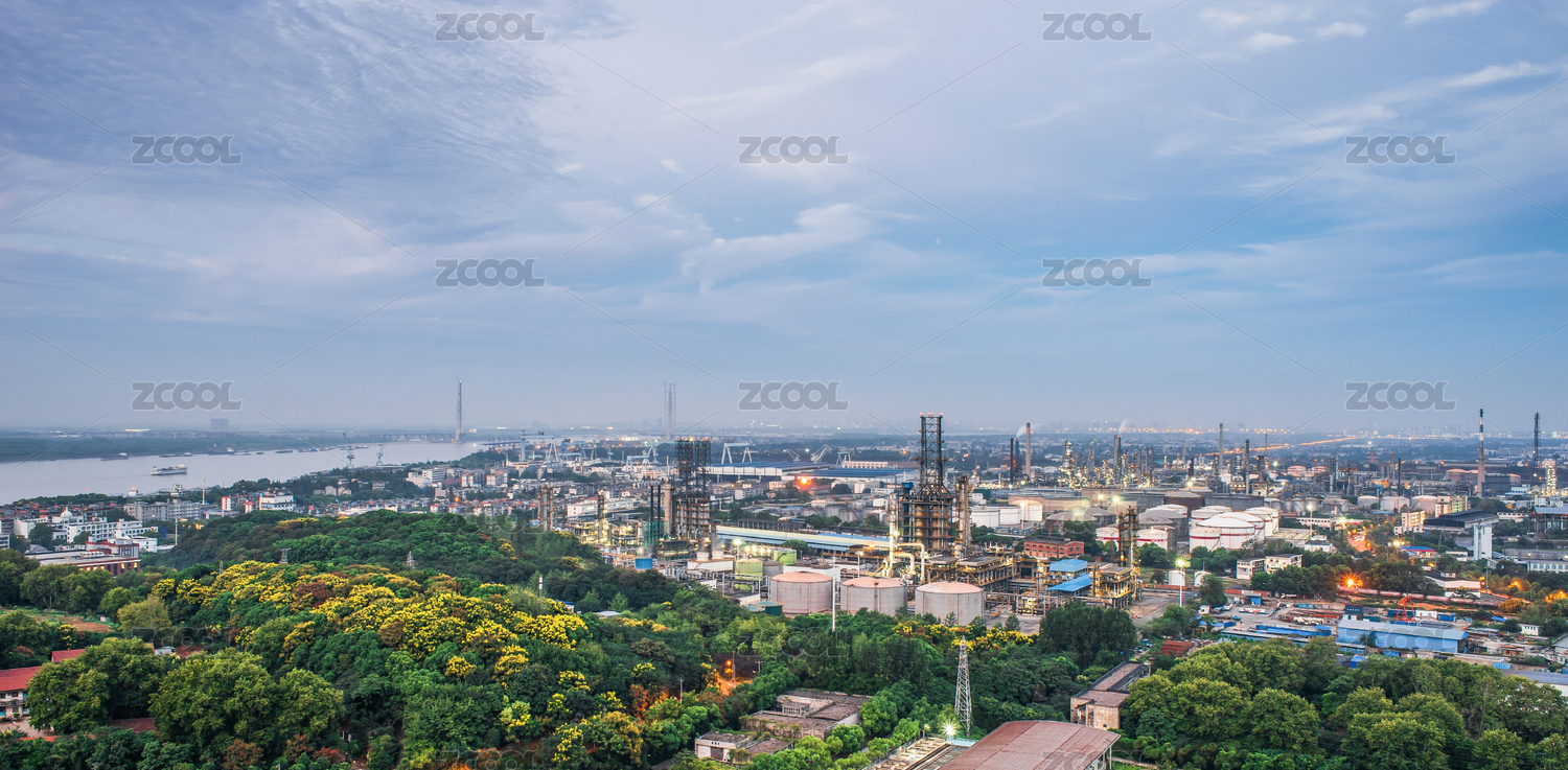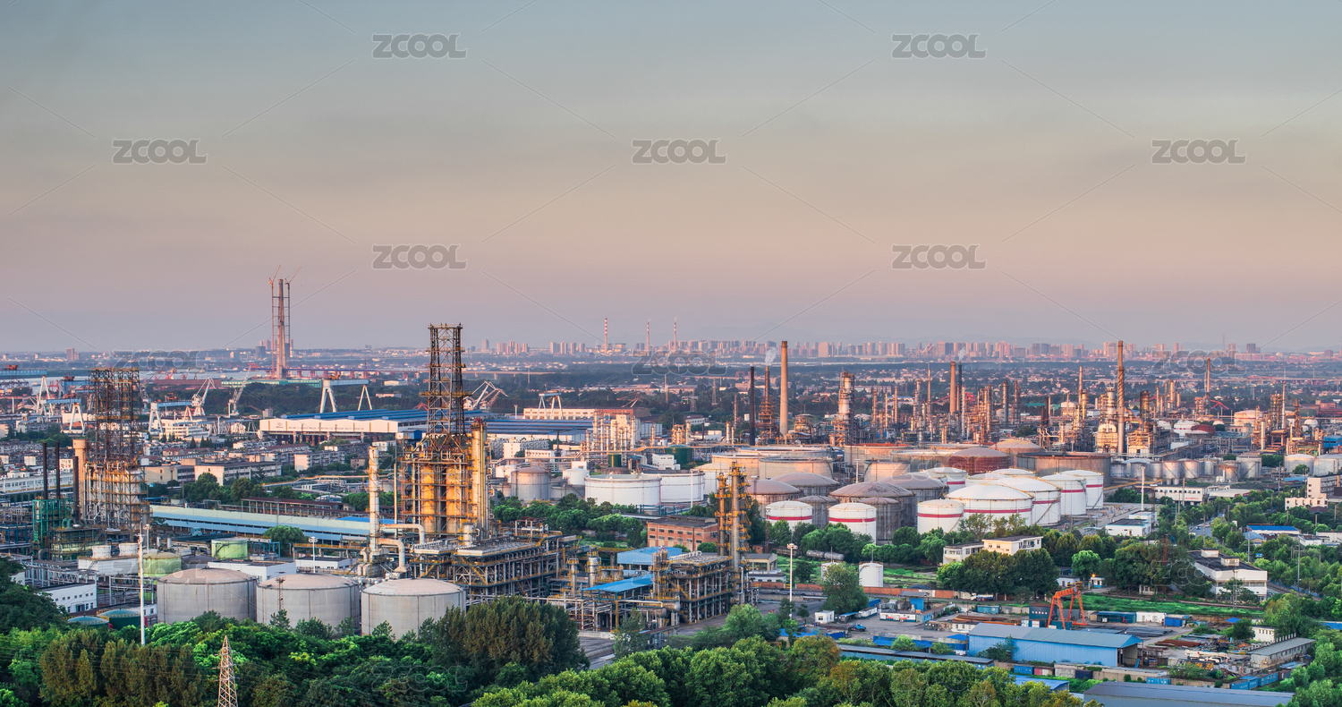 大面積天空下的工業(yè)區(qū)黃昏的風(fēng)景