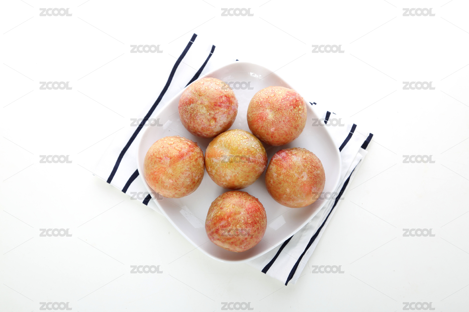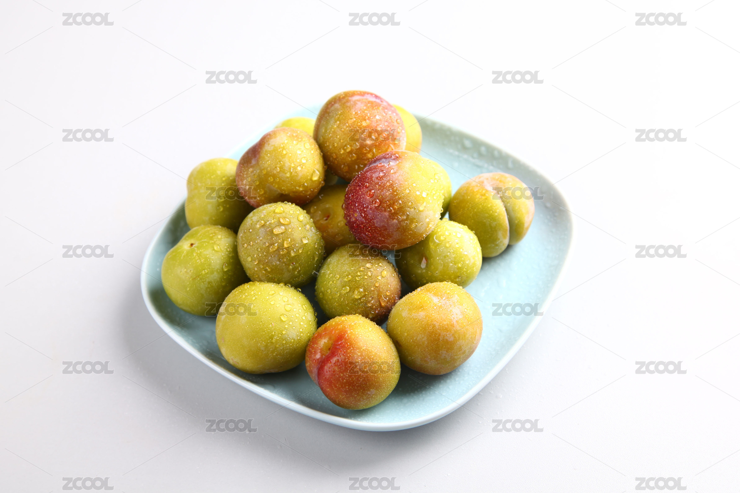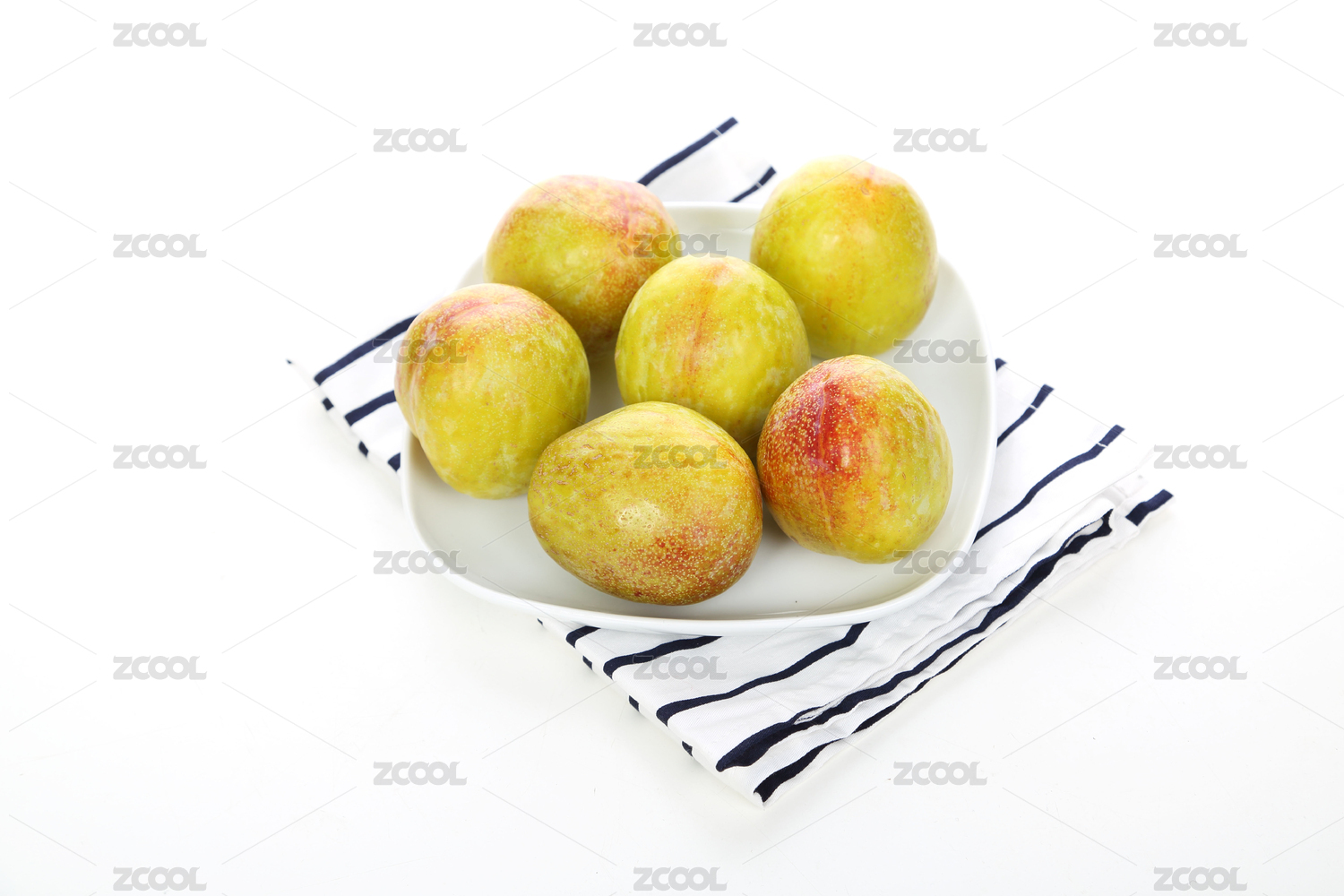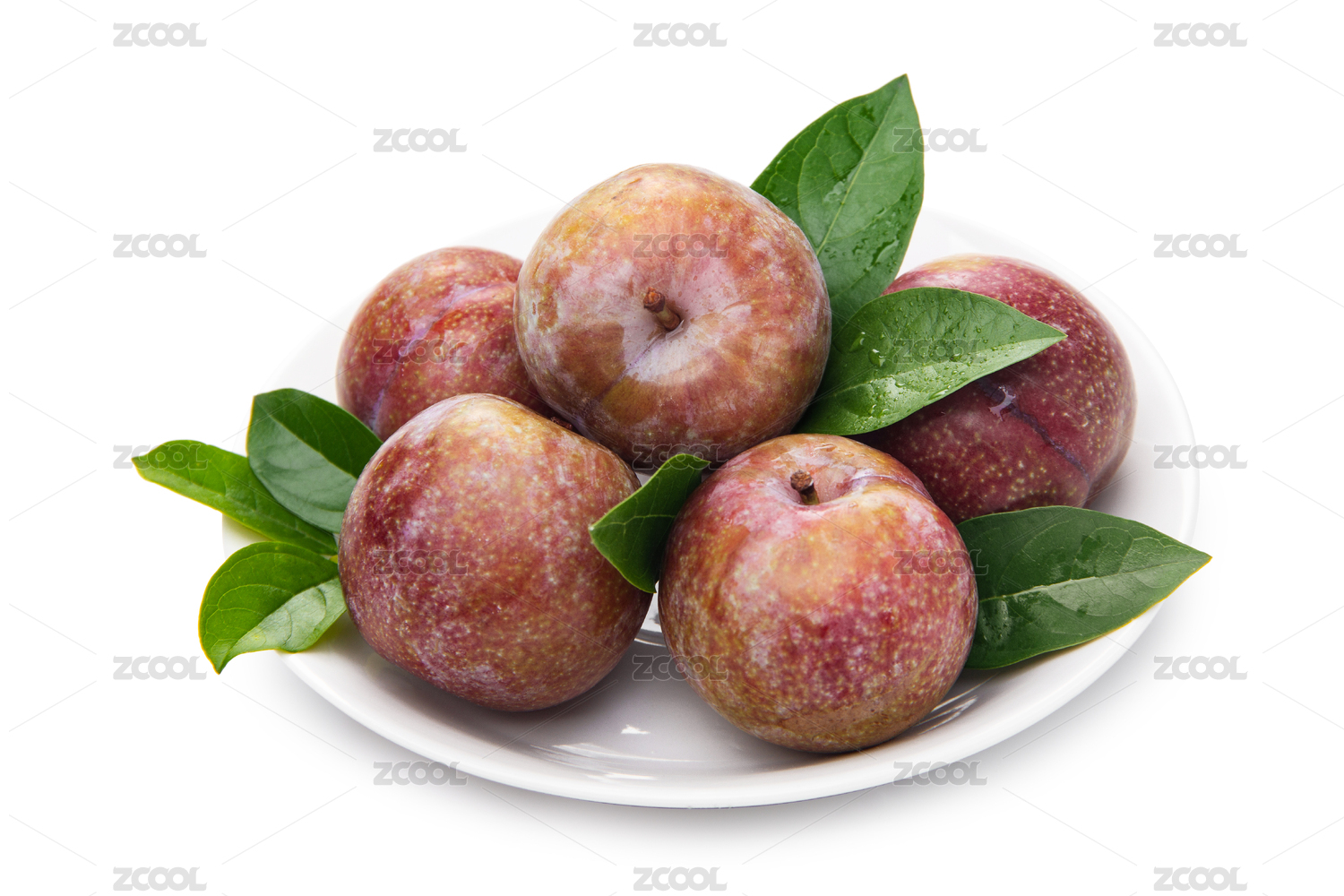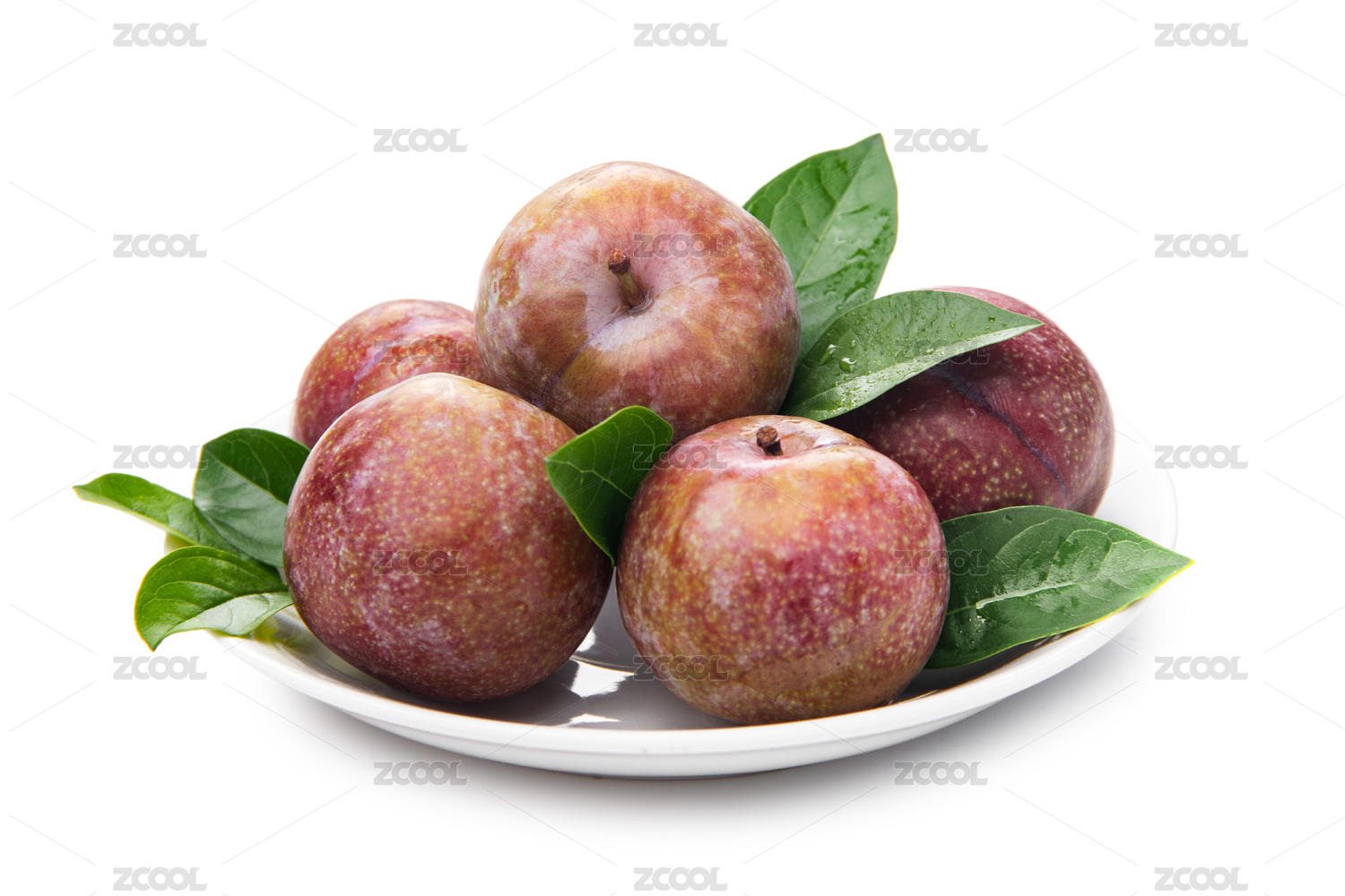 三華李帶綠葉子裝白盤白底