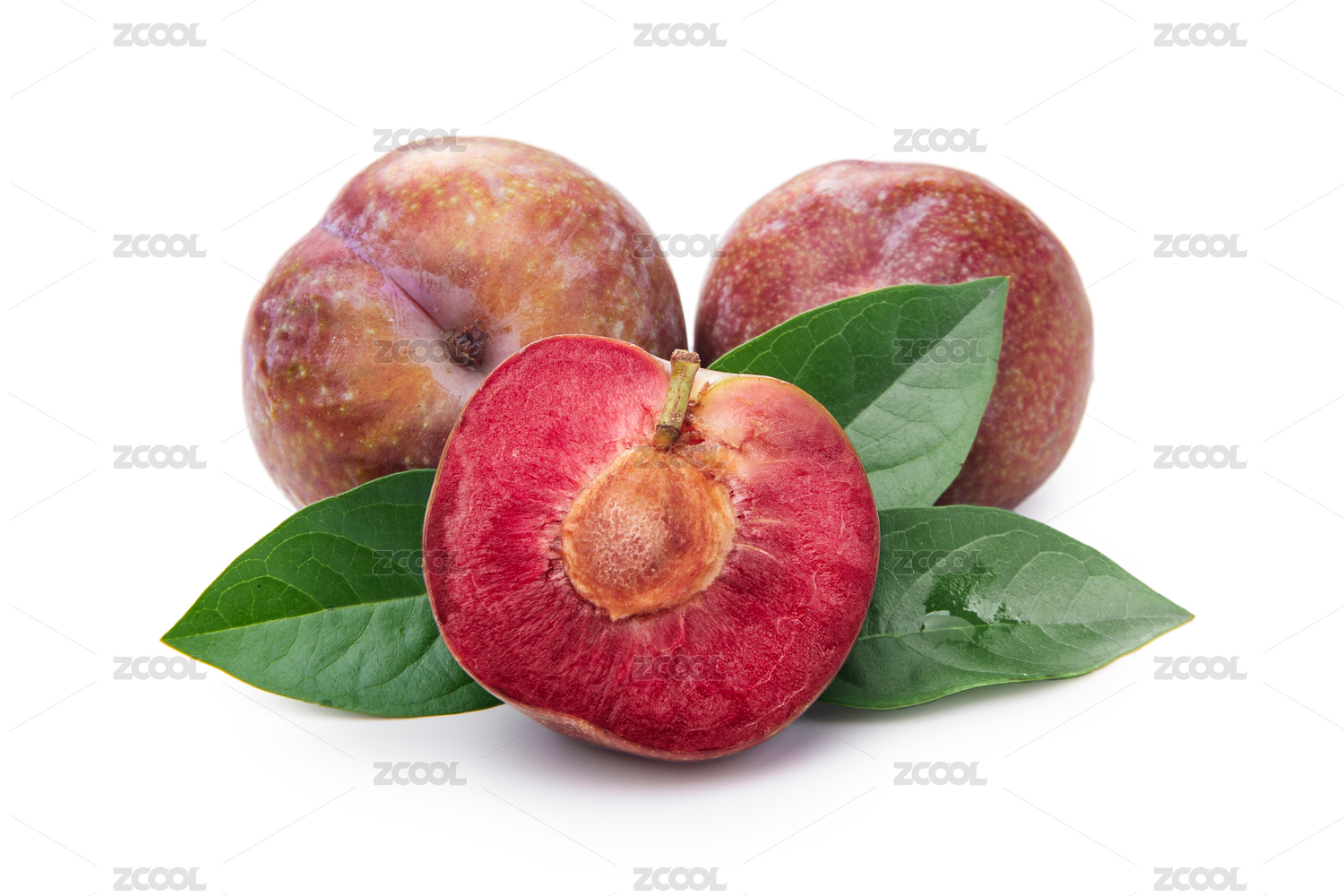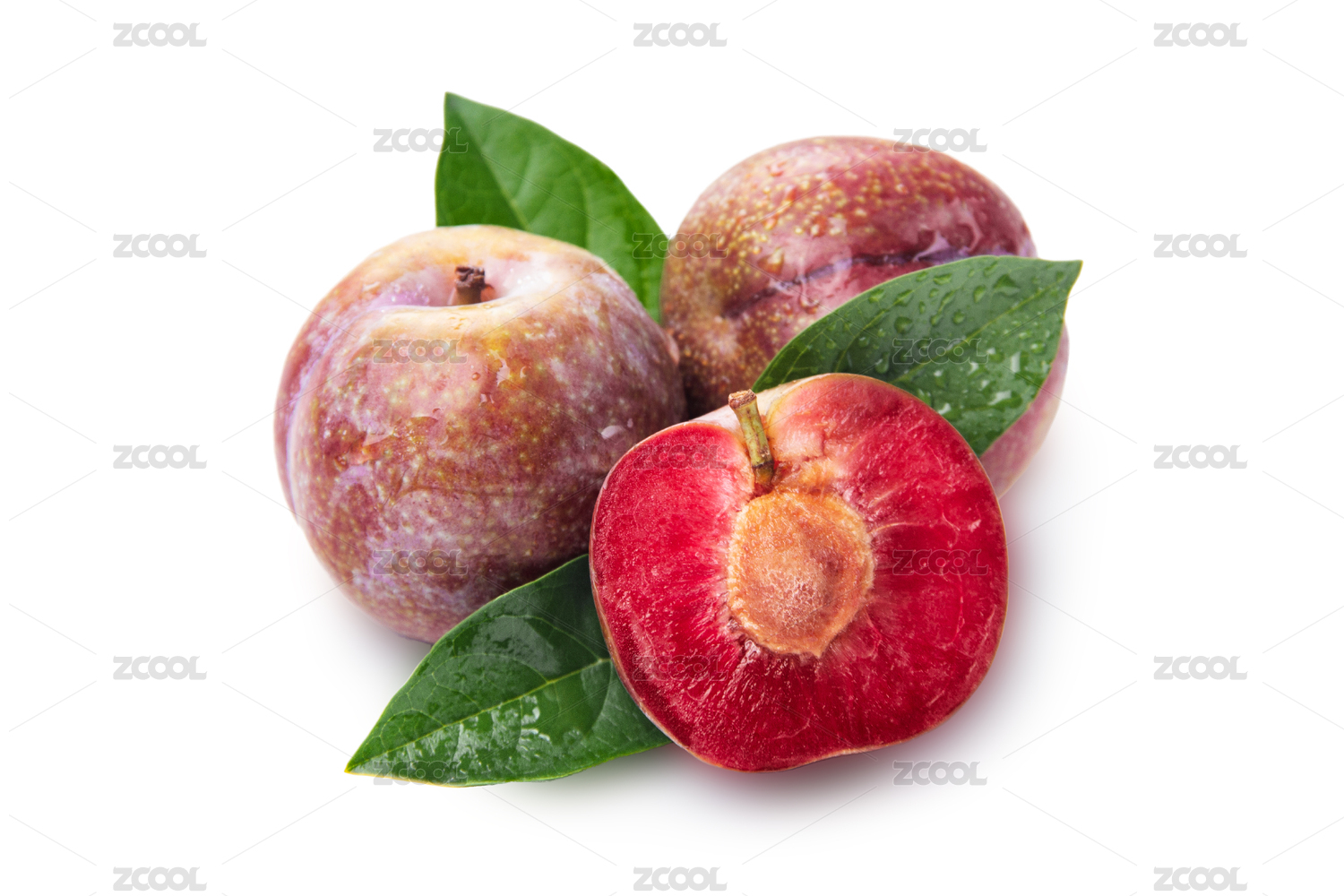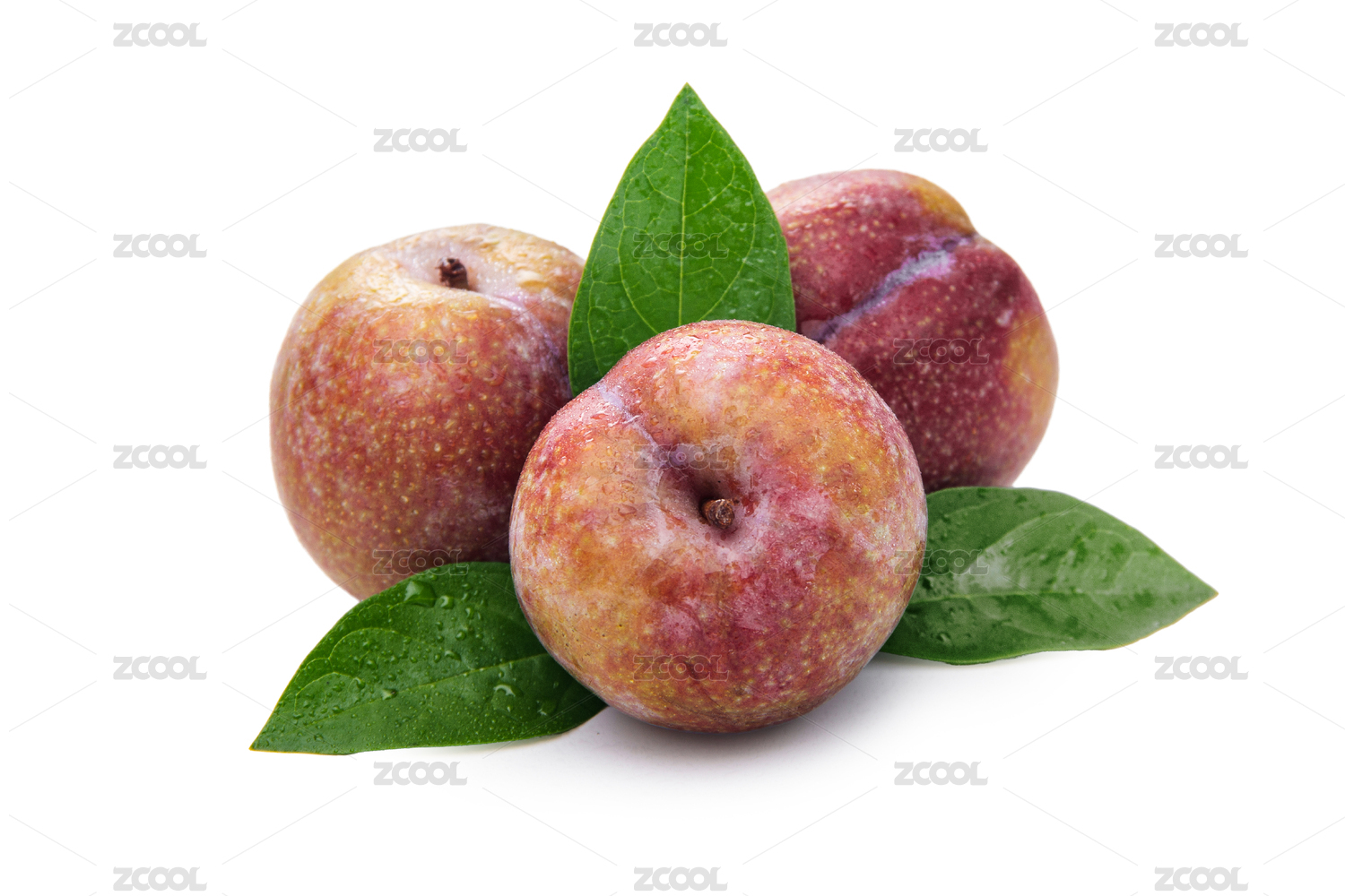 三華李3個帶綠葉子白底
