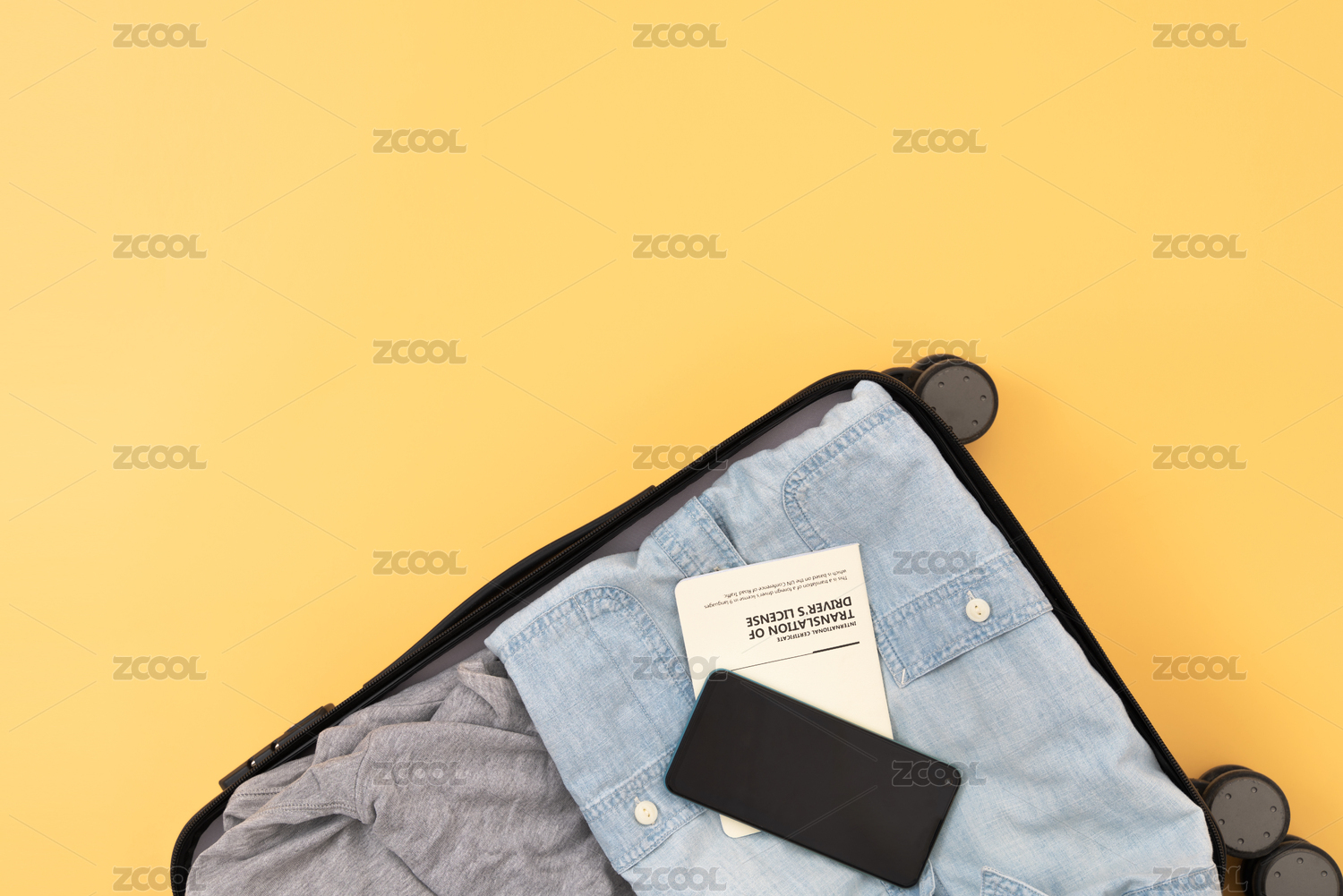 打開的行李箱,黃色背景