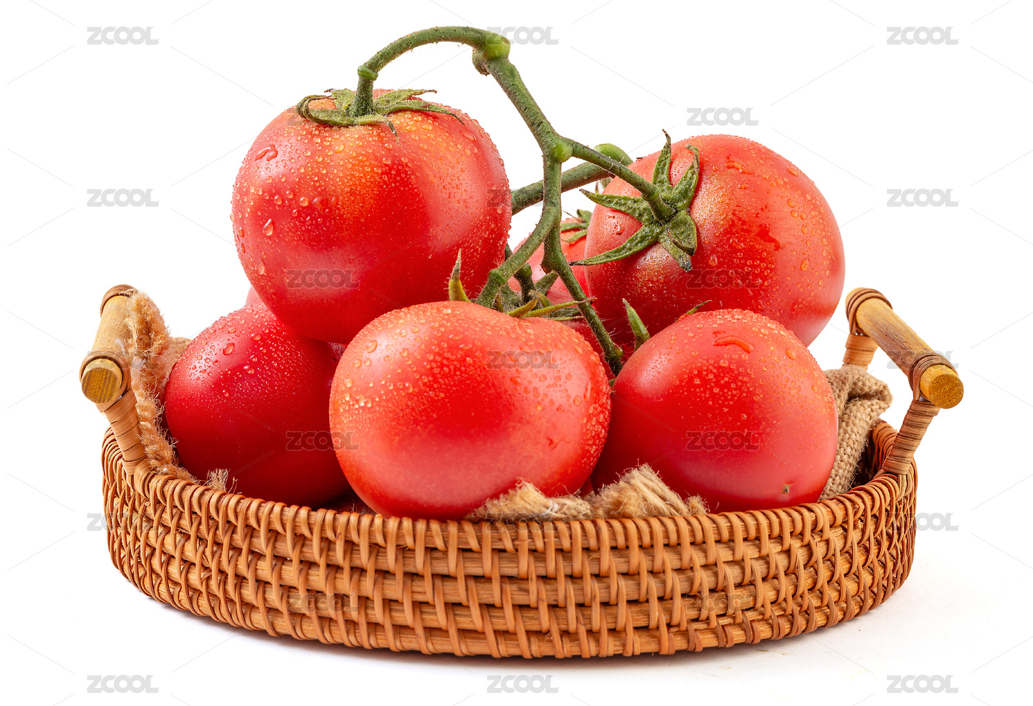 白色背影中放著一串新鮮的西紅柿