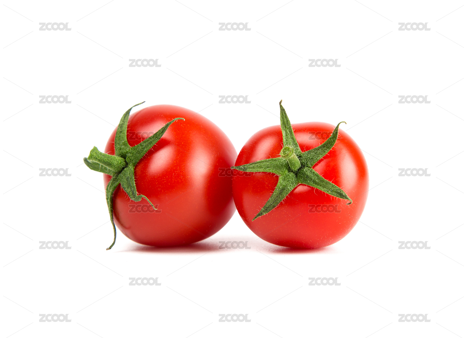 白色背景上兩個(gè)串新鮮的帶有水珠的小西紅柿櫻桃小番茄