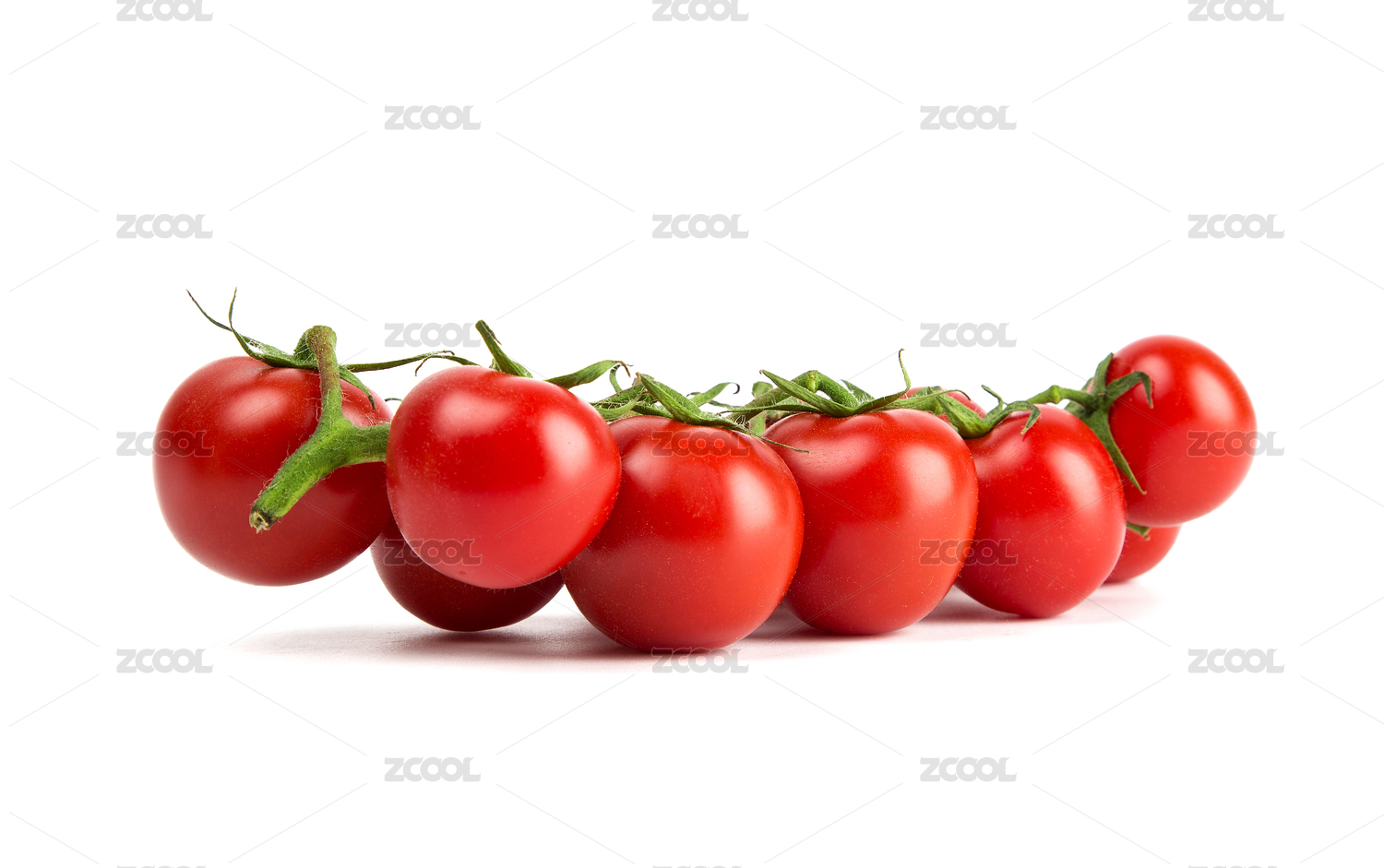 整串紅色櫻桃番茄特寫白色背景