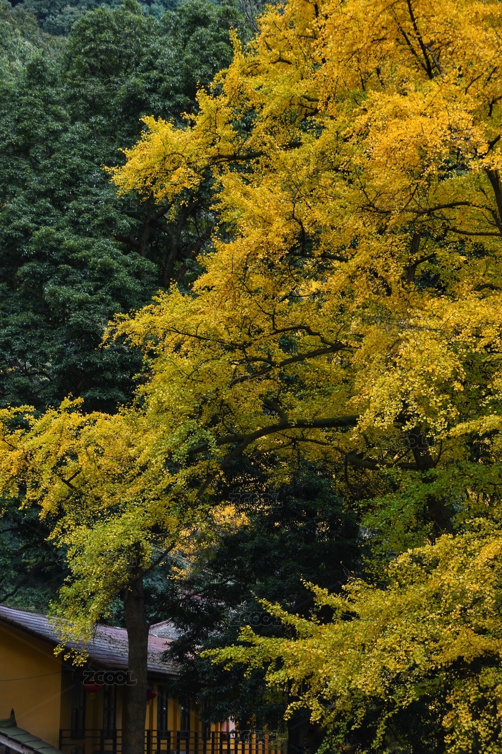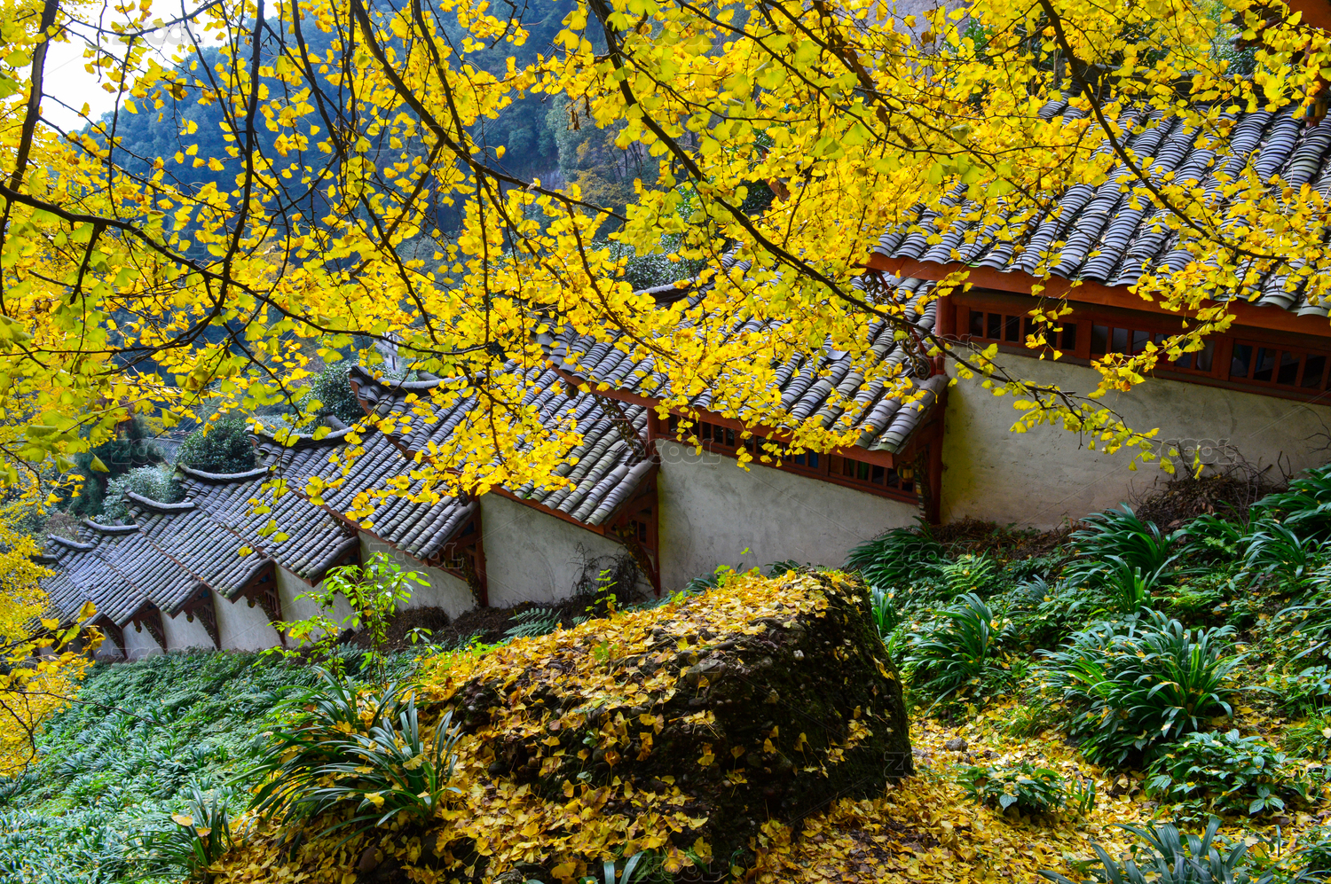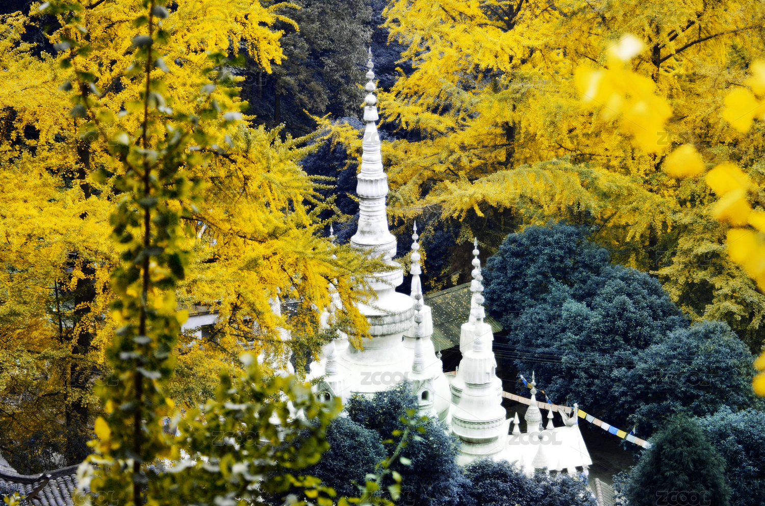 中國四川省成都市大邑縣金星鄉(xiāng)白巖寺銀杏樹秋景