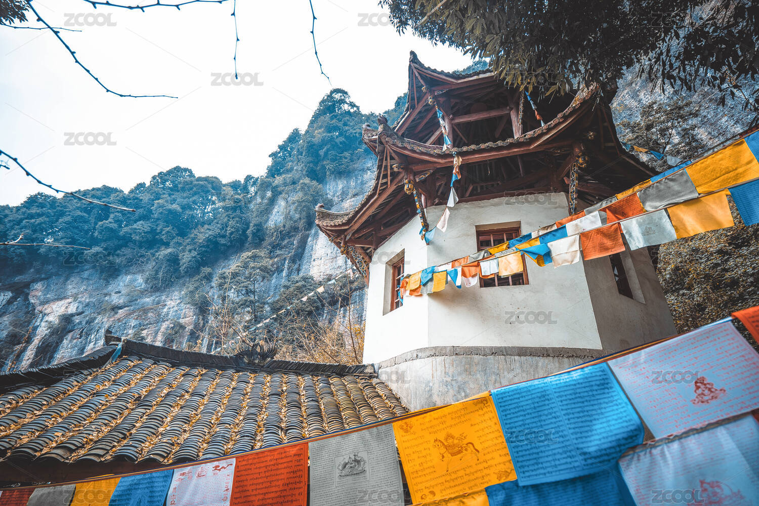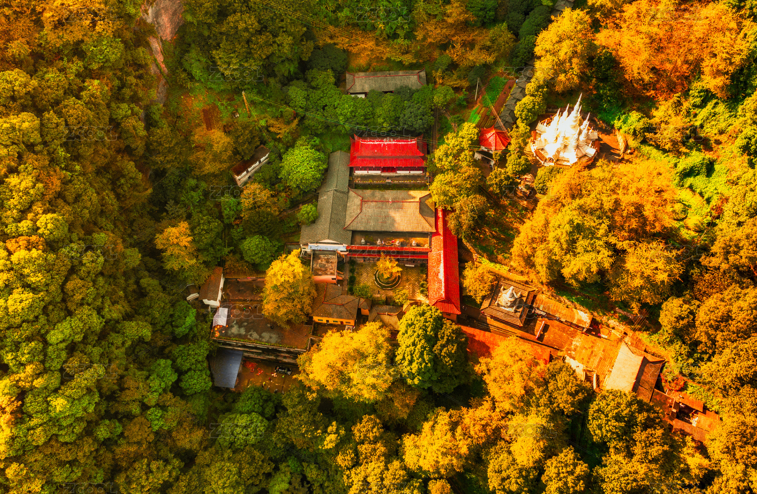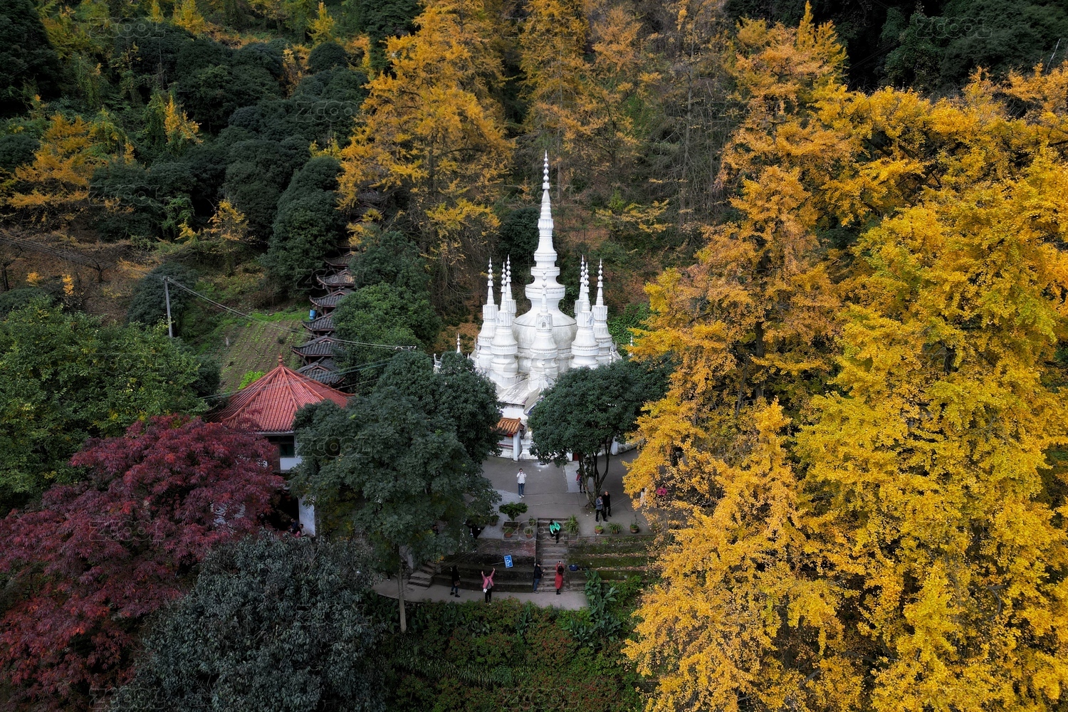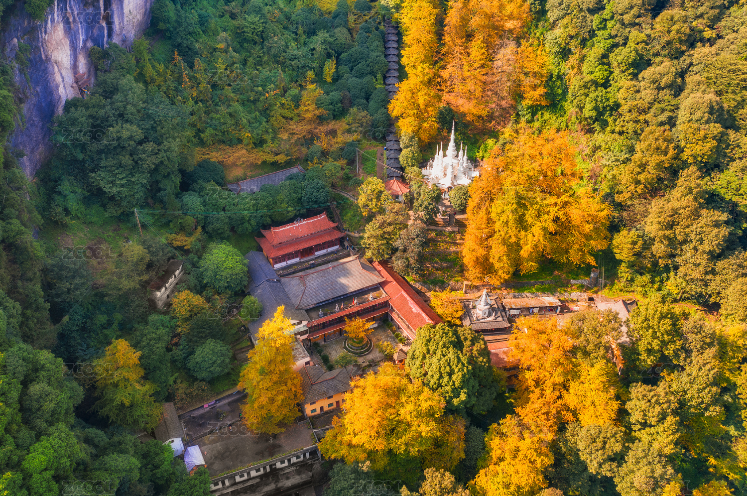 中國四川成都大邑縣白巖寺秋景航拍圖