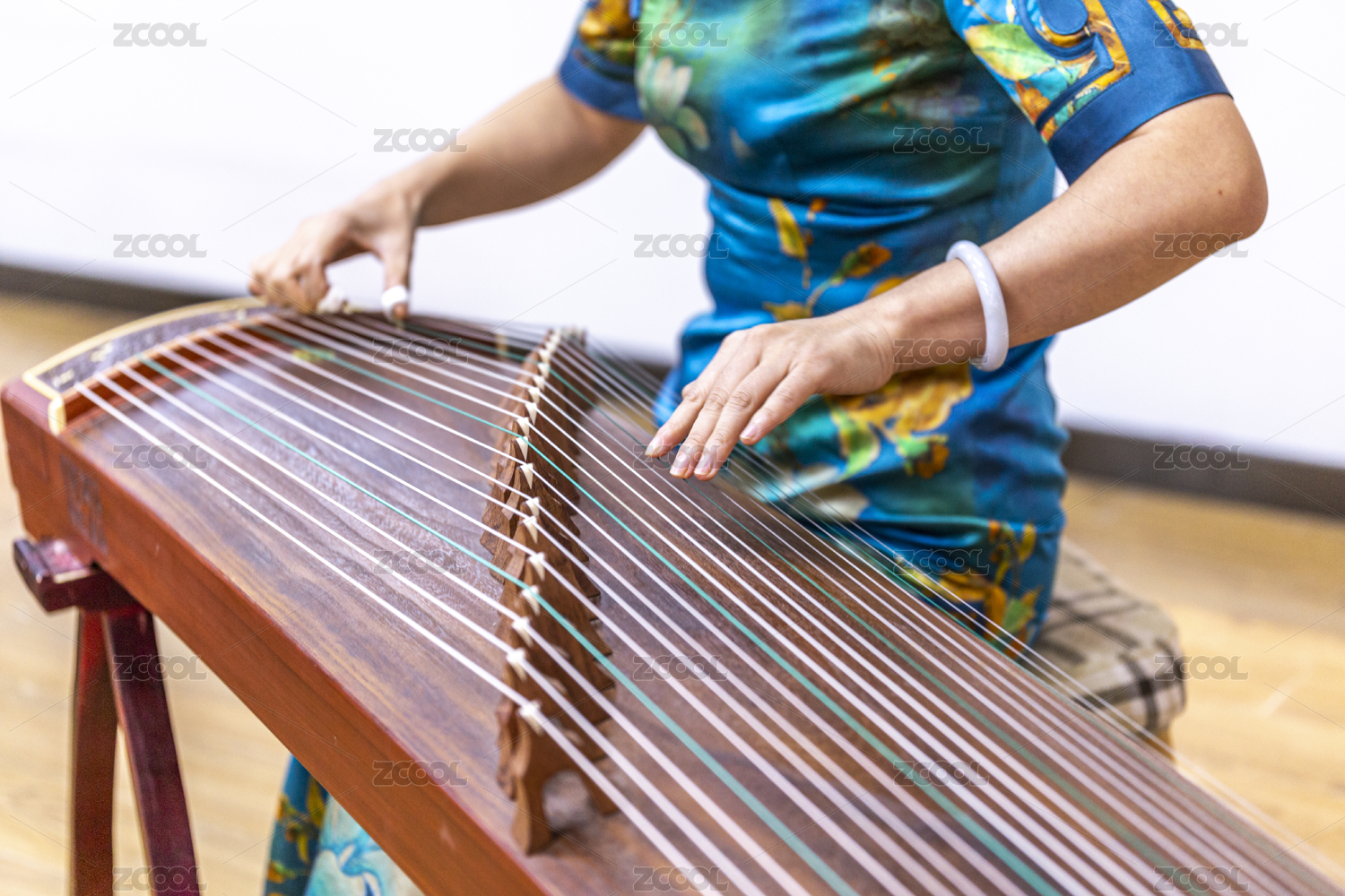 一位女孩正在演奏古箏樂器