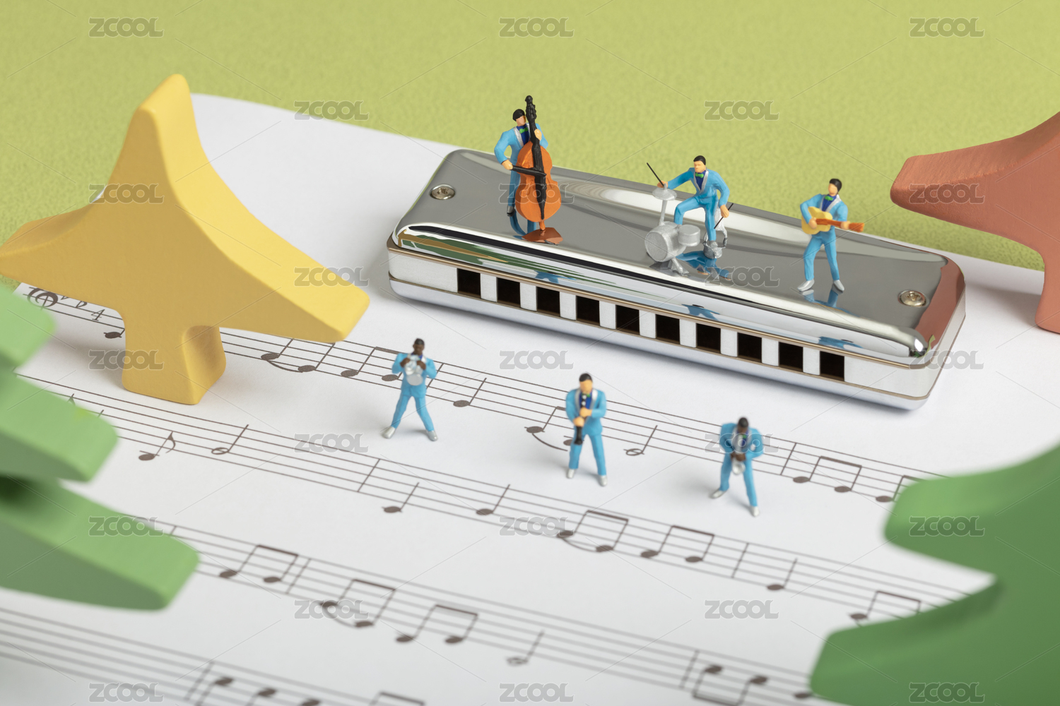 微縮創(chuàng)意音符音樂交響樂演奏指揮棒與聽眾
