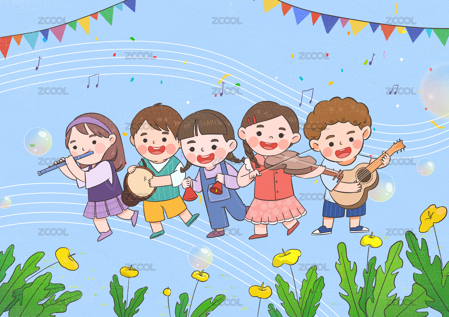 快樂演奏的五個(gè)小朋友