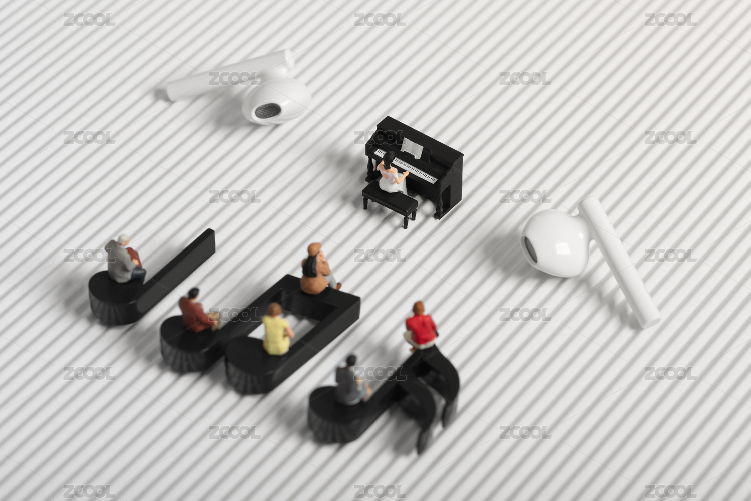 微縮創(chuàng)意耳機(jī)鋼琴演奏與聽眾