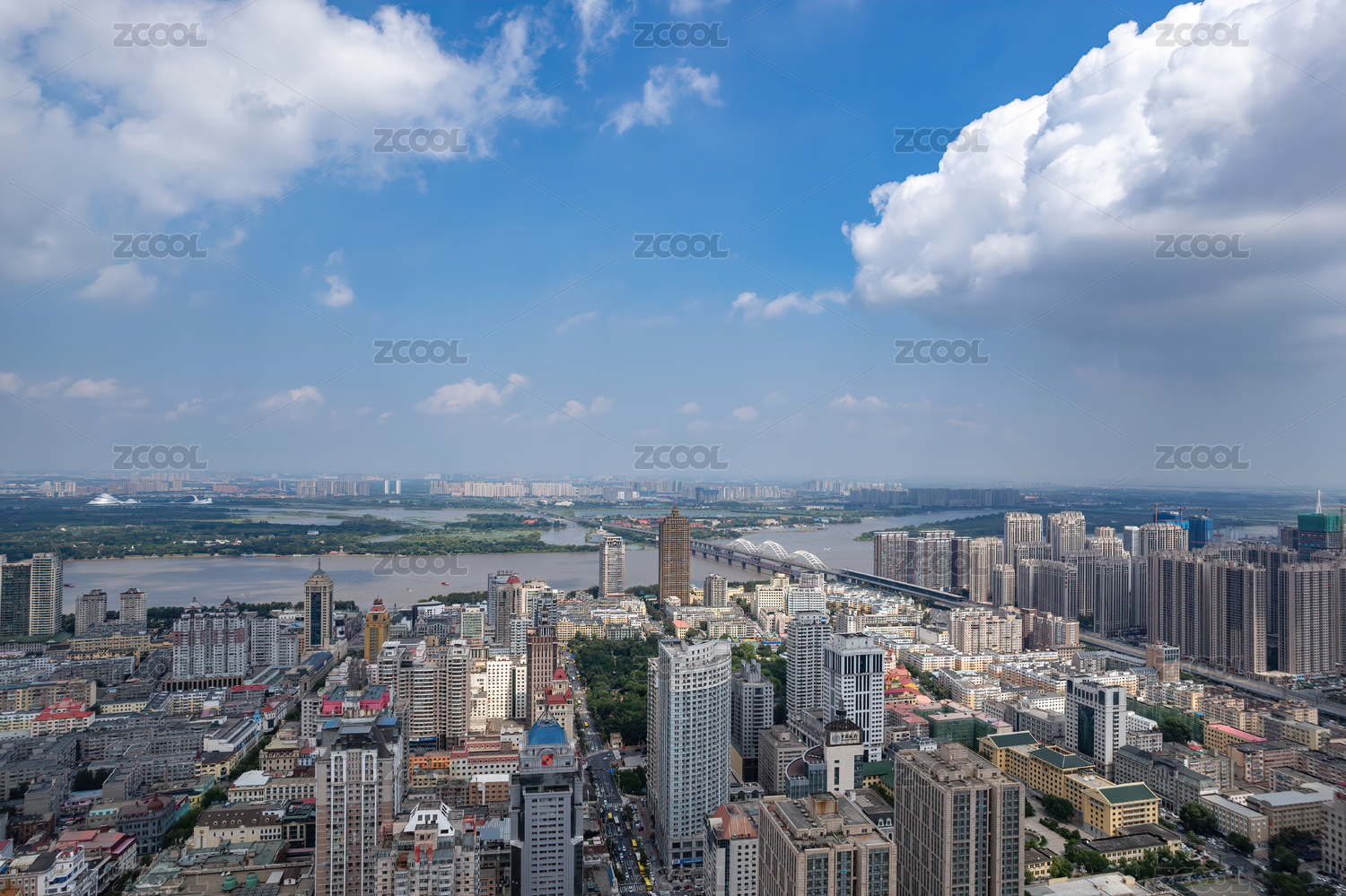 黑龍江哈爾濱市區(qū)松花江大橋航拍
