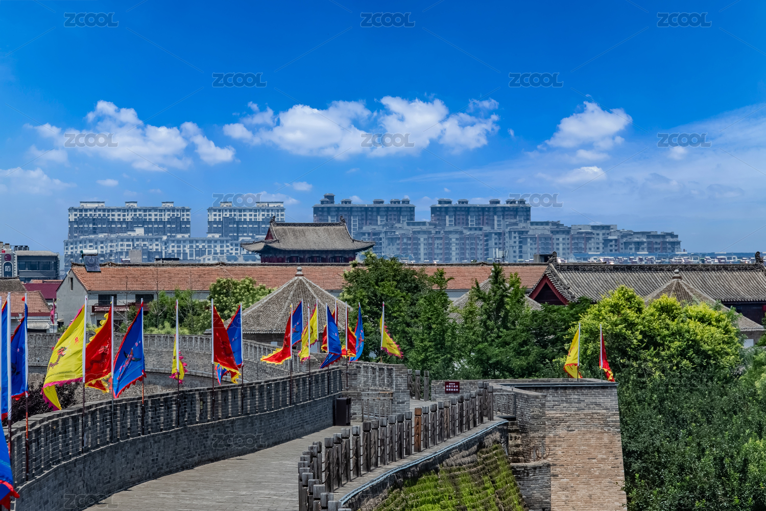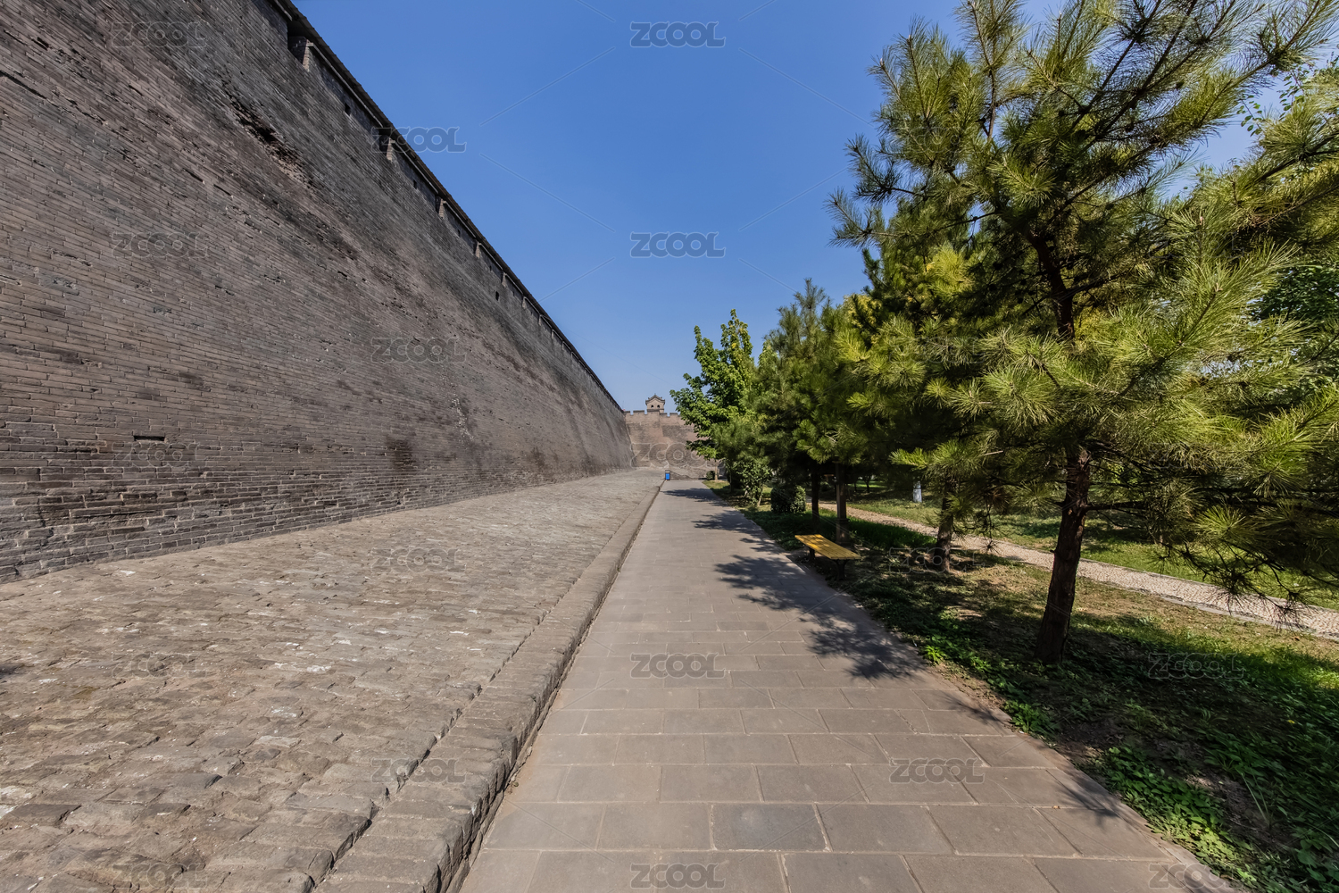 中國山西省平遙縣古城墻步行棧道園林建筑