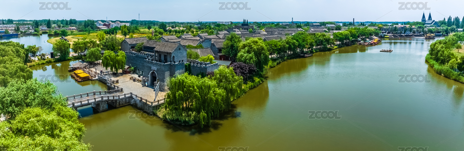 中國江蘇省新沂市航拍窯灣古鎮(zhèn)園林建筑