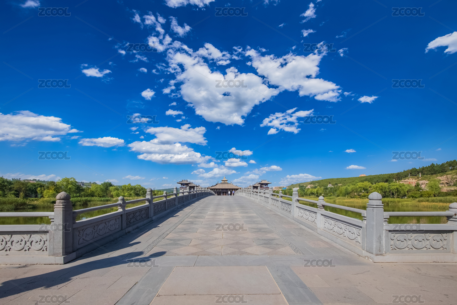 中國(guó)山西大同云岡石窟靈巖寺西側(cè)橋梁外景圖