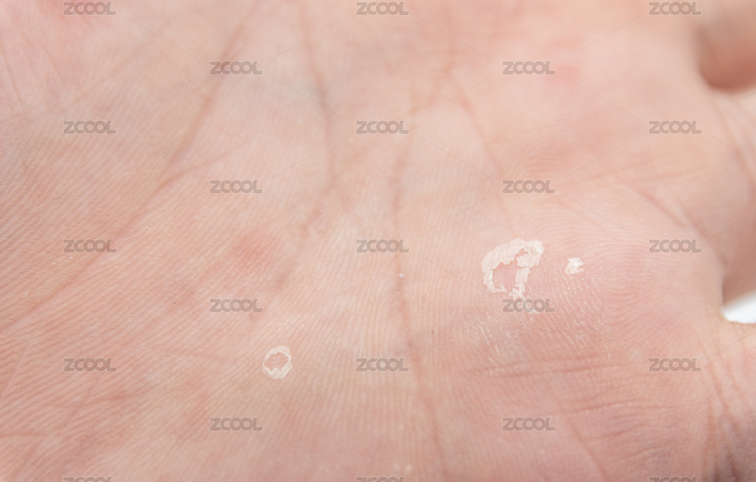 手掌出現(xiàn)汗皰疹后蛻皮,角質(zhì)層脫的微距特寫