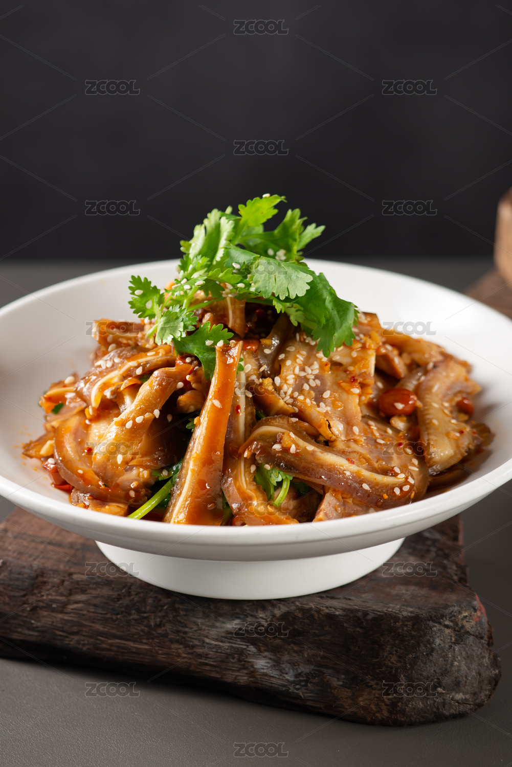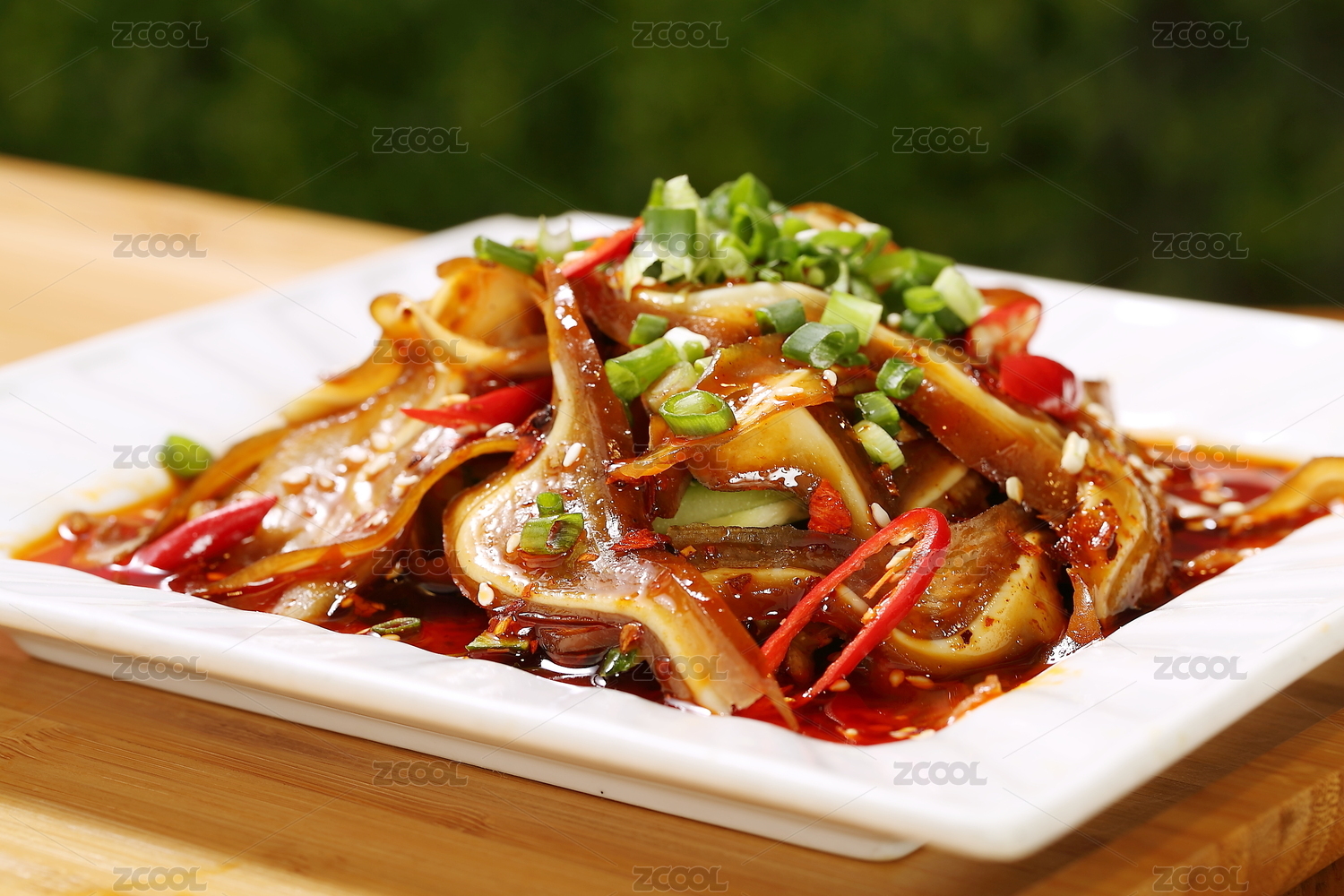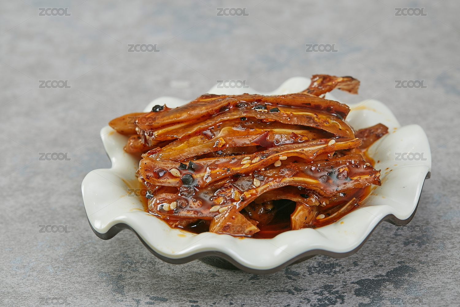 波浪形圓盤里的涼拌麻辣紅油豬耳