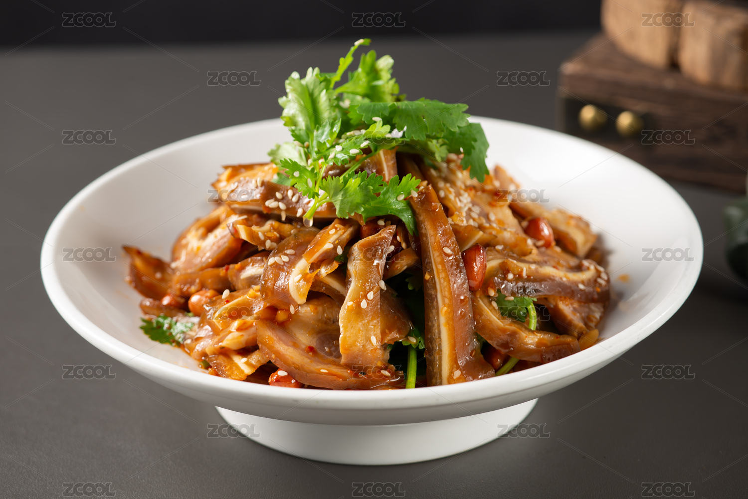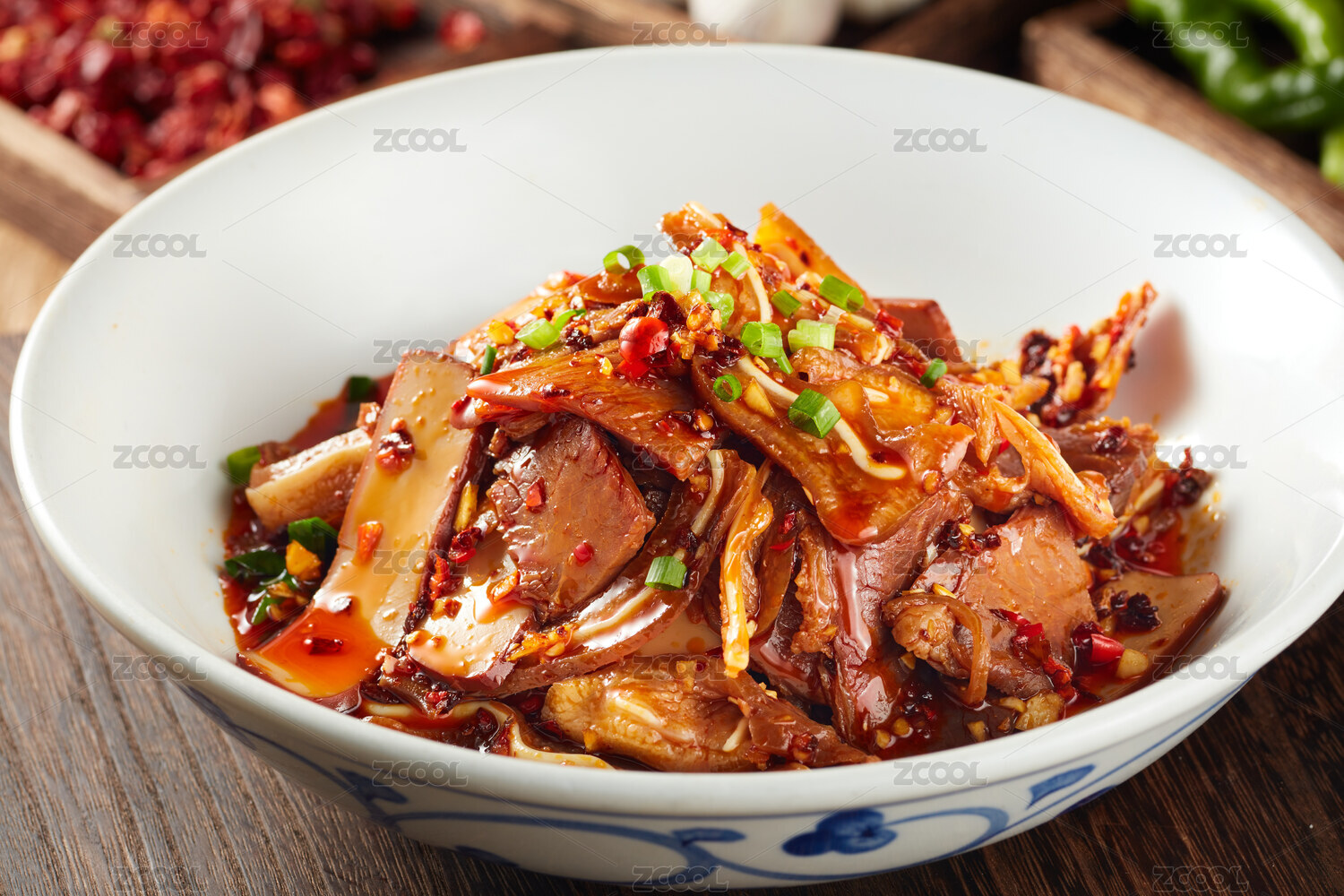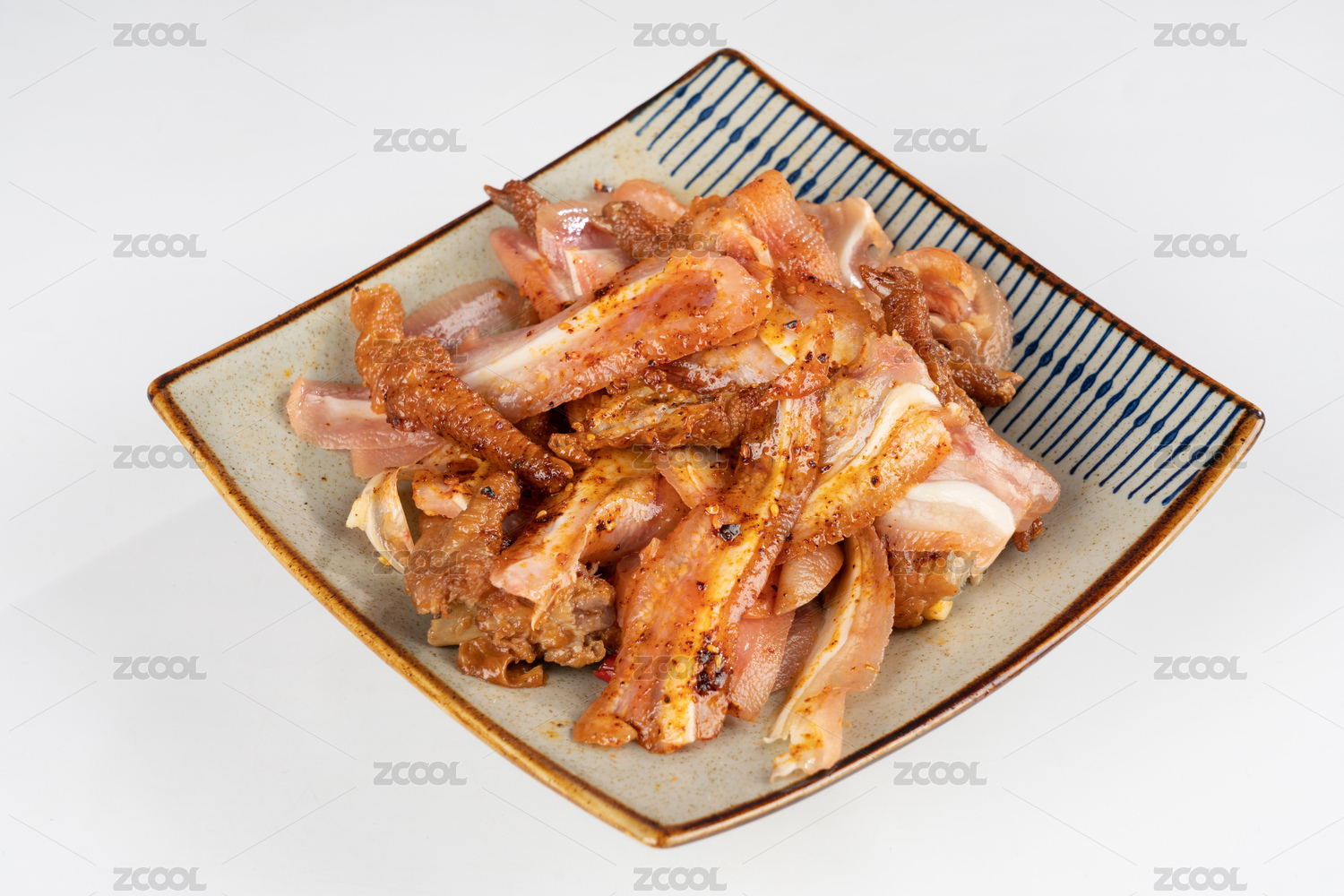 波浪形圓盤里的涼拌麻辣紅油豬耳