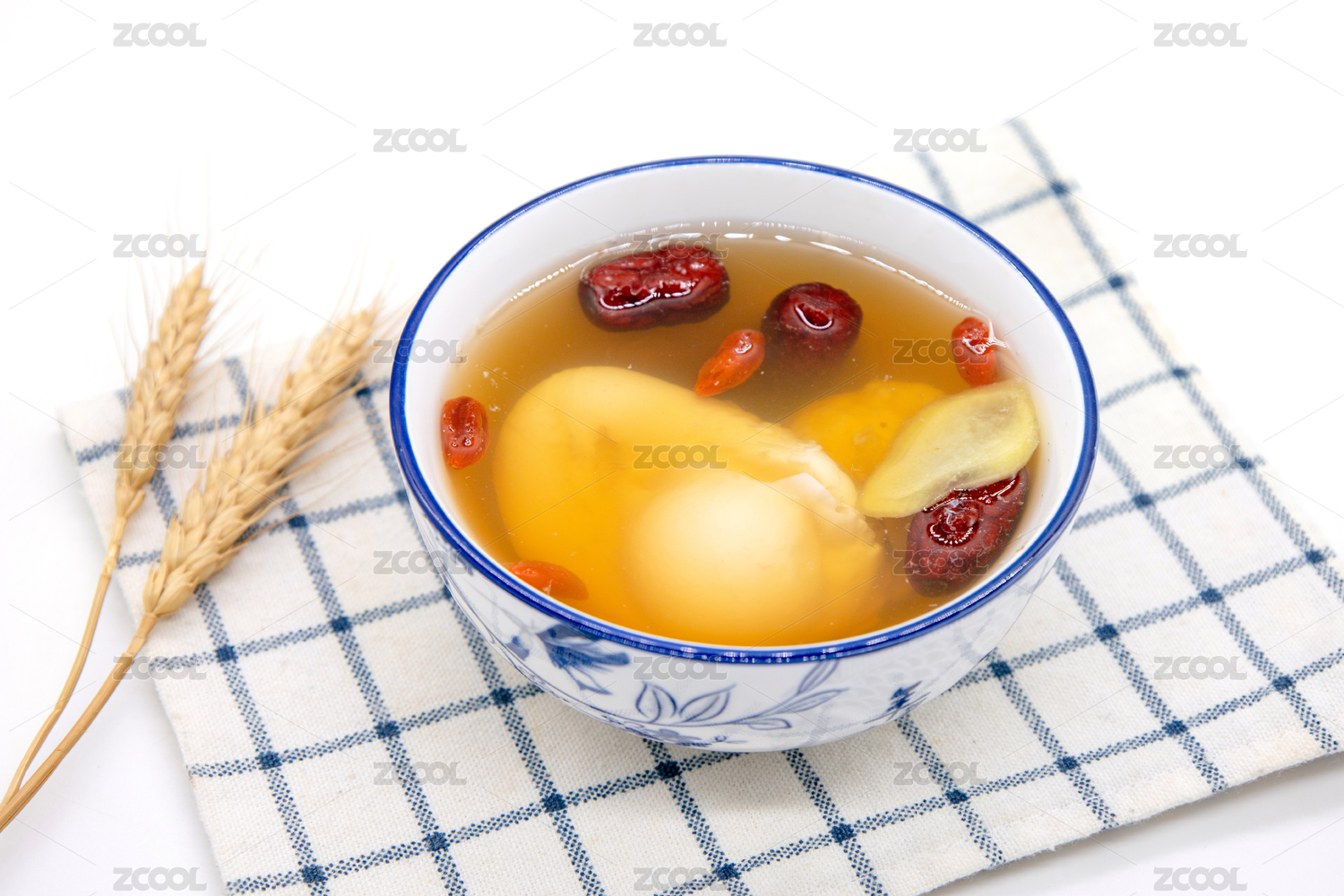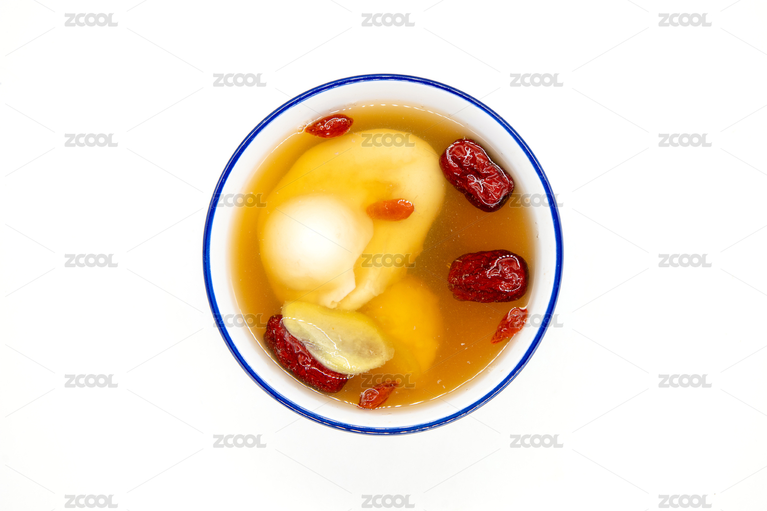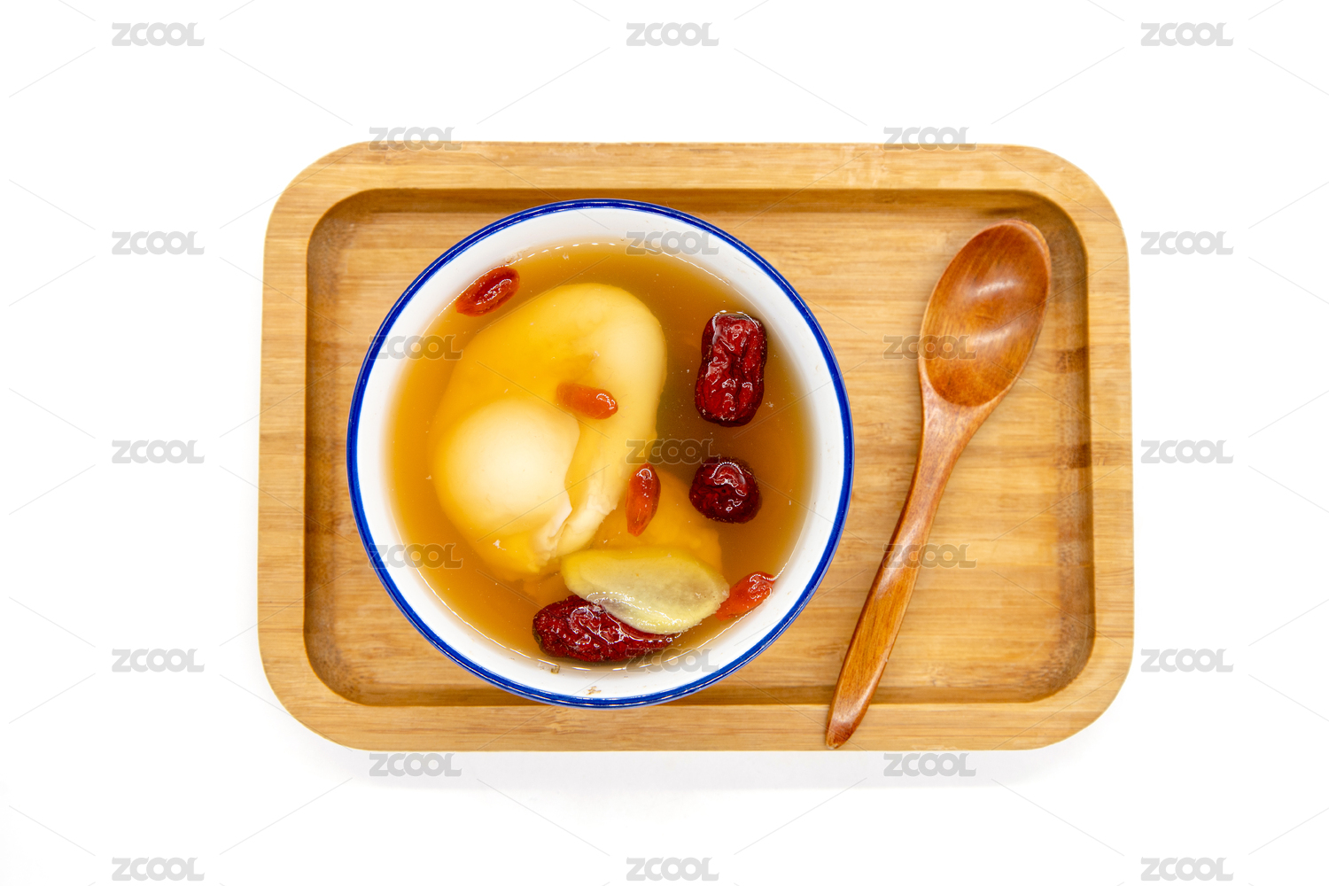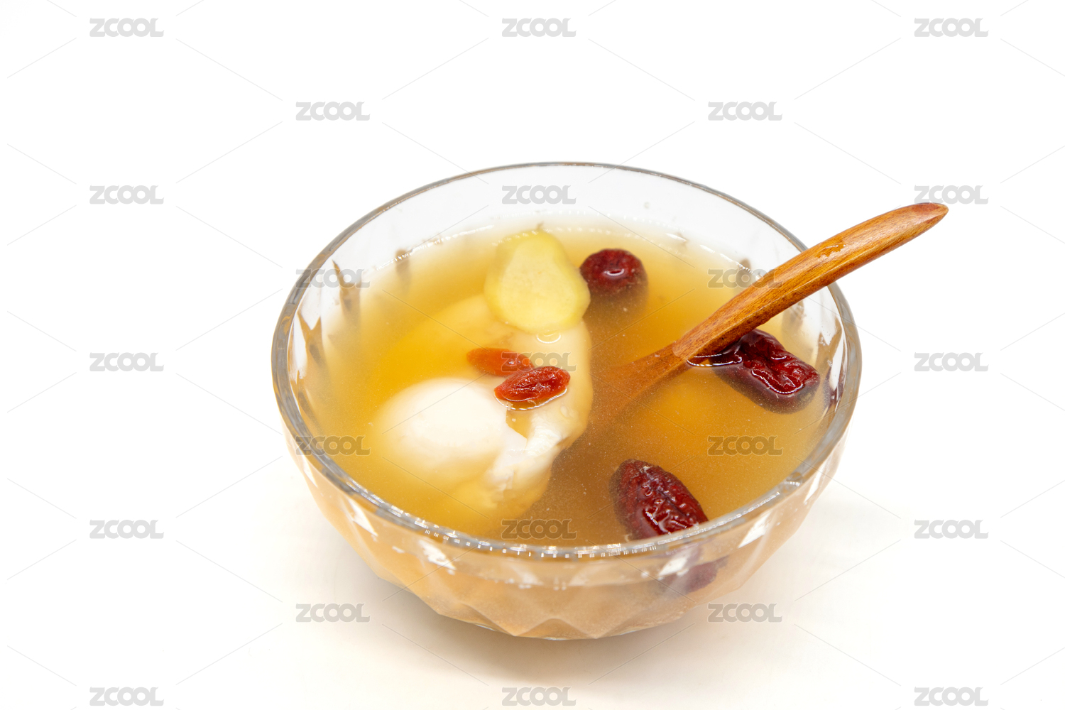 白色背景一碗生姜紅棗雞蛋羹