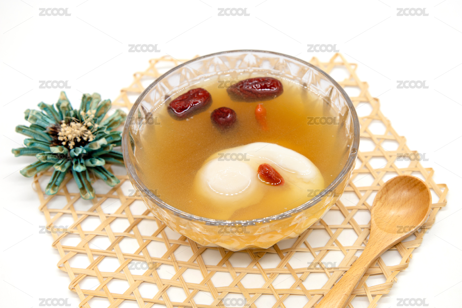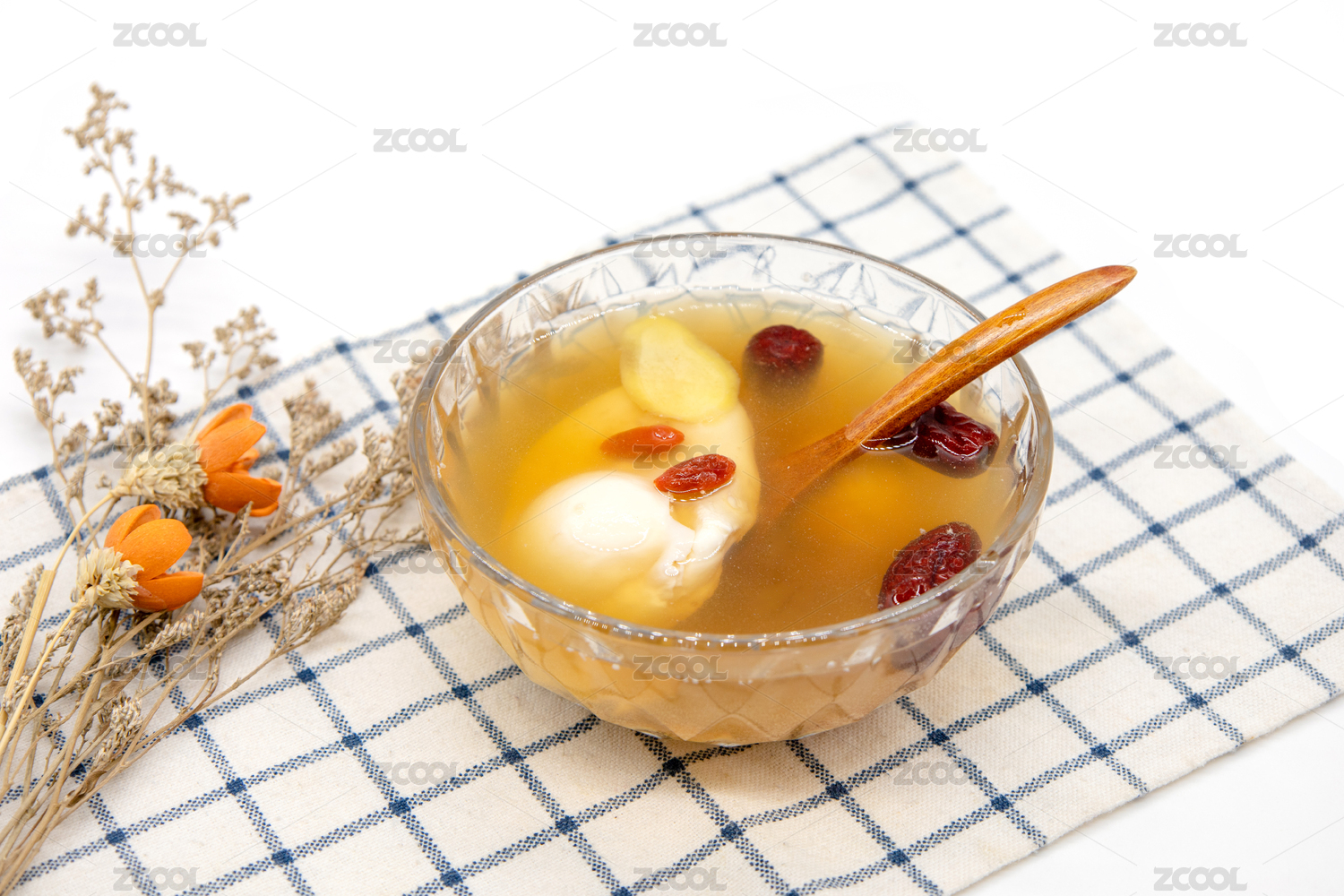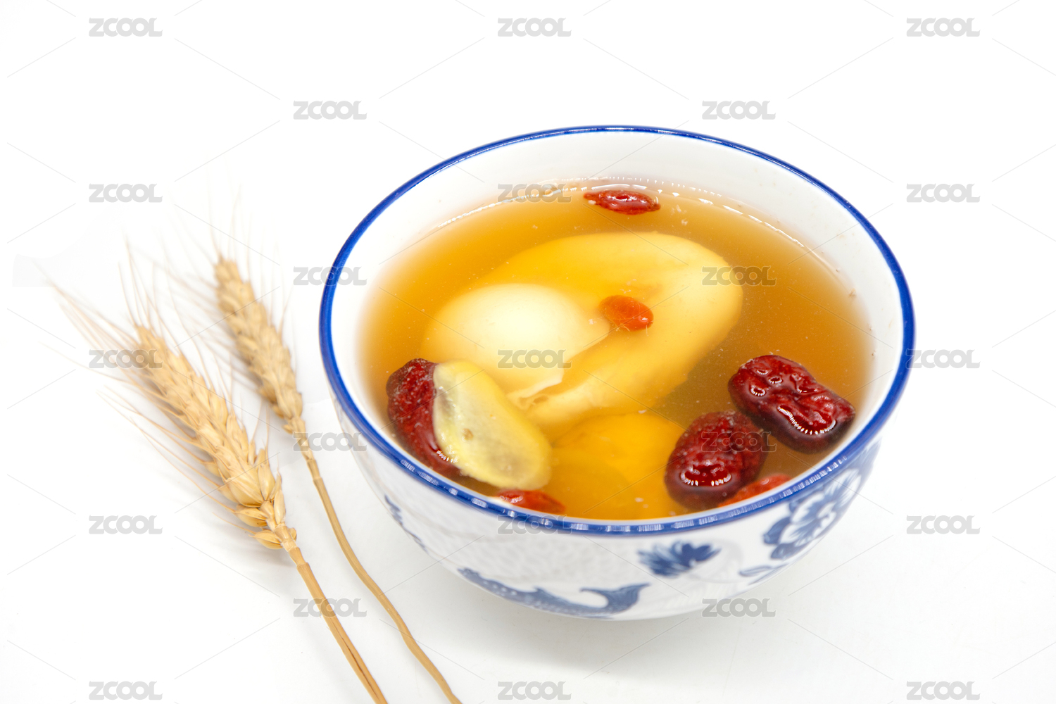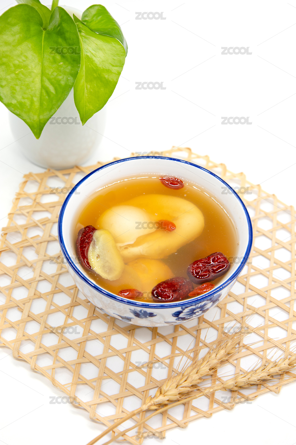 白色背景一碗生姜紅棗雞蛋羹