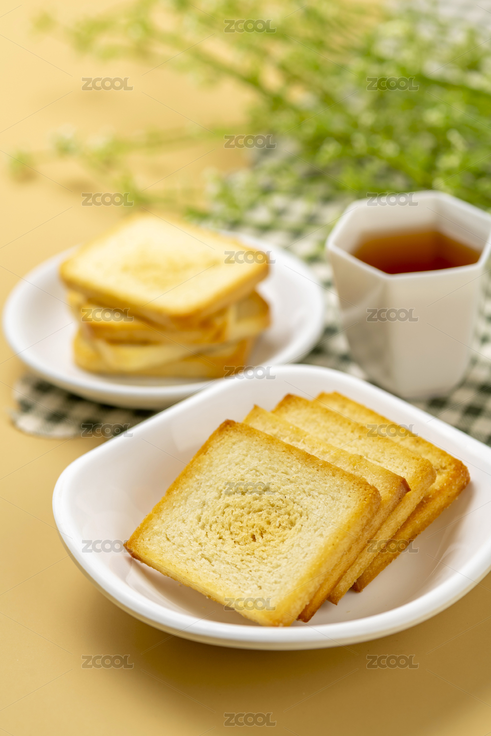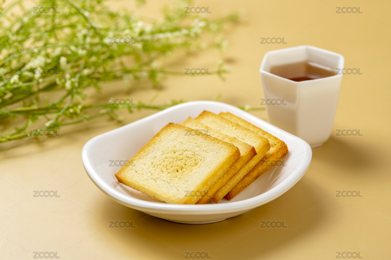 白底上放著兩塊完整的烤饃干
